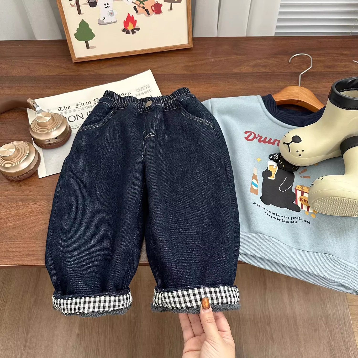 새로운 Prellis Edge 어린이 한국식 Curled 봄 및 가을 중년식 청바지 소년 봄 착용 느슨한 바지 소녀 바지스토어 가기