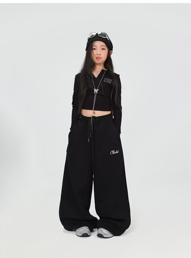 어린이 거리 댄스 타이드 브랜드 2025 봄 소녀 솔리드 컬러 재즈 댄스 쇼 세트 댄스 타이드 원피스 세트