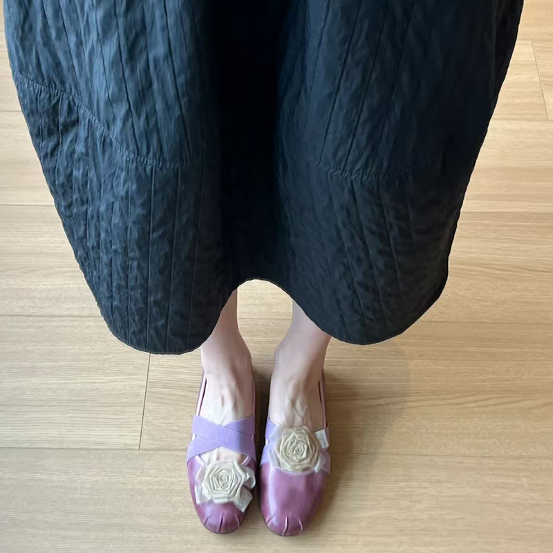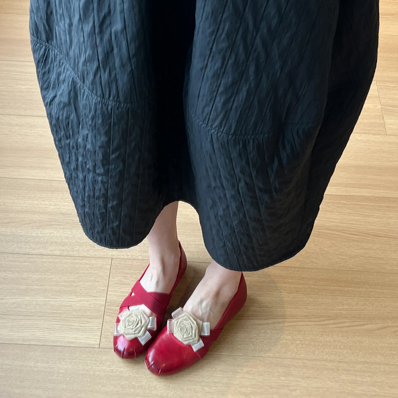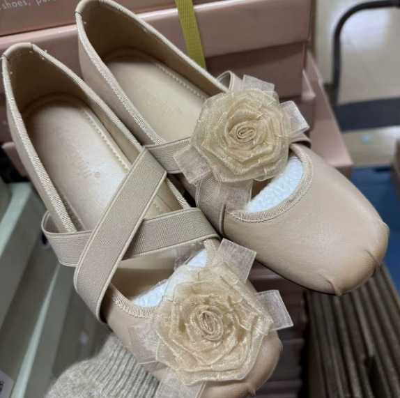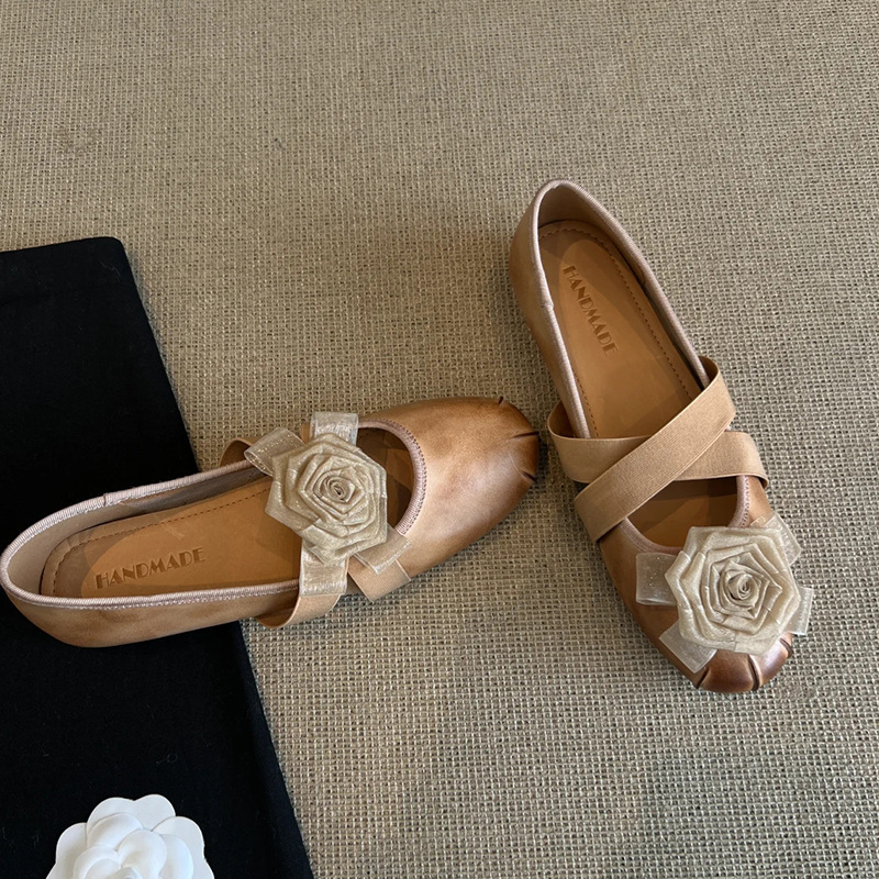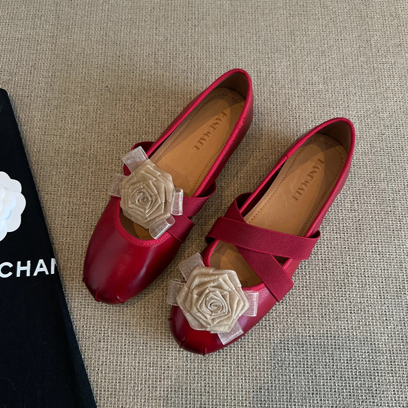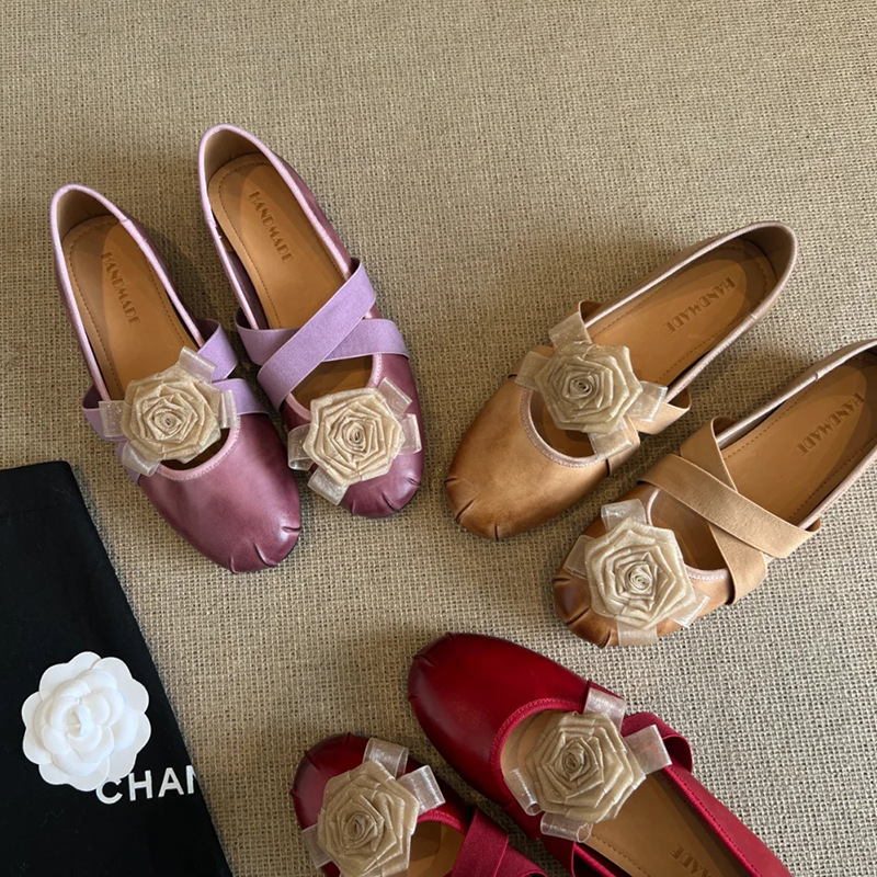 양가죽 버전 ~ 여성을위한 5CM 프랑스 복고풍 동백 꽃 메리 제인 신발 2025 새로운 다목적 크로스 탄성 밴드스토어 가기
