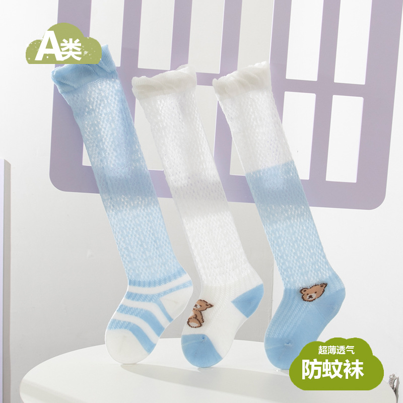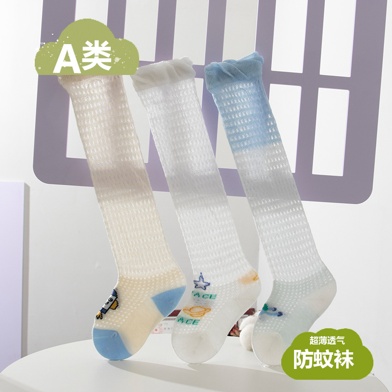 아기 스타킹, 무릎 위 양말, 아기 모기 방지 양말, 초박형 여름 메쉬 통기성 느슨한 입 신생아 클래스 A 통기성스토어 가기
