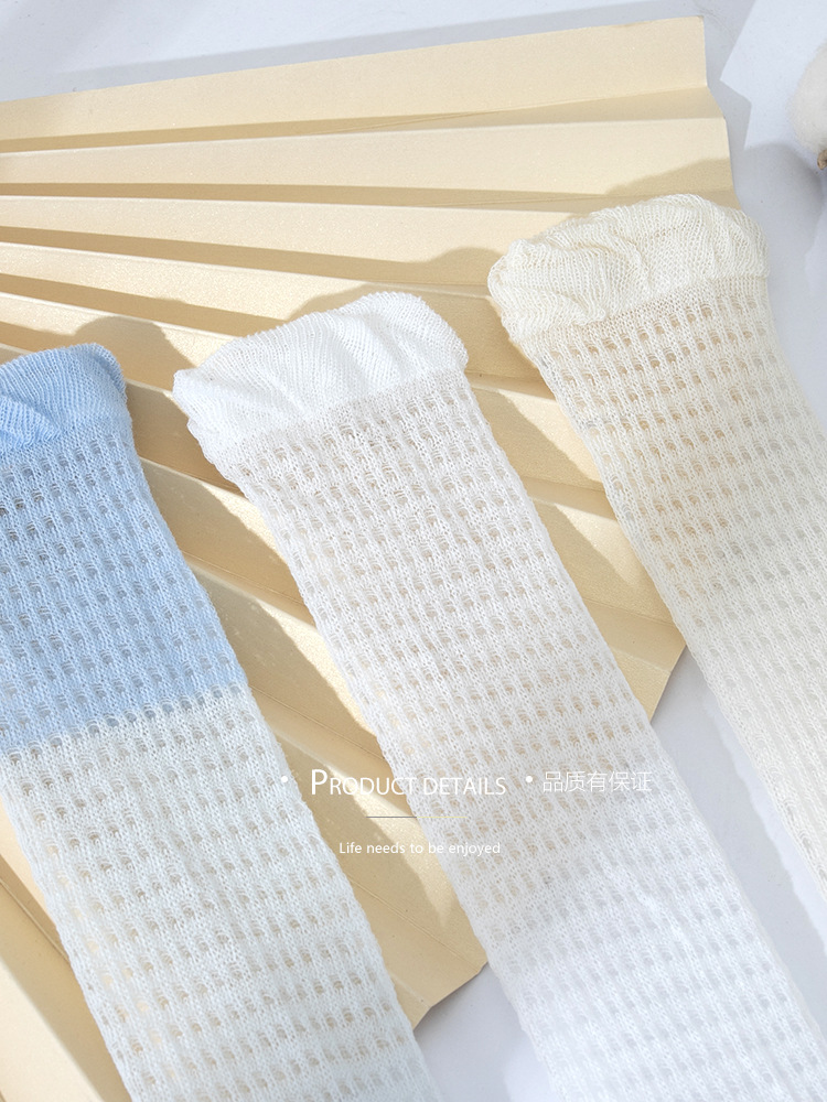 宝宝日系泡泡口中筒袜春夏薄款网眼女棉袜甜美蝴蝶结跨境婴儿袜子