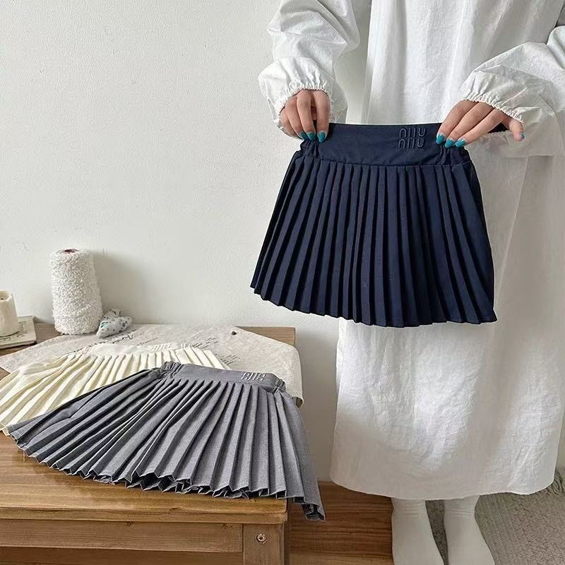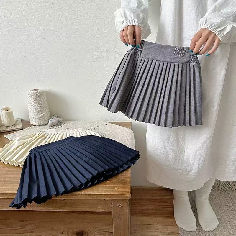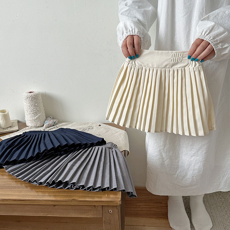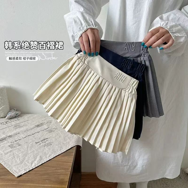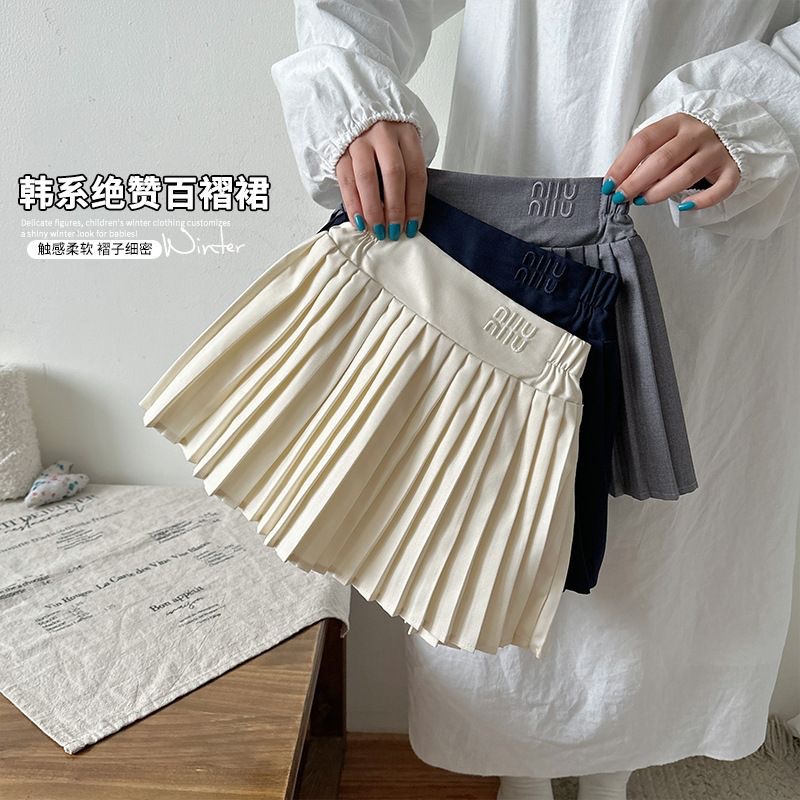 2025 봄과 여름 한국 스타일 새로운 도착 중소 소녀 스커트 짧은 소매 대학 스타일 어린이 주름 치마 단색스토어 가기