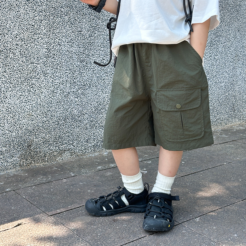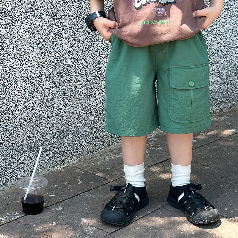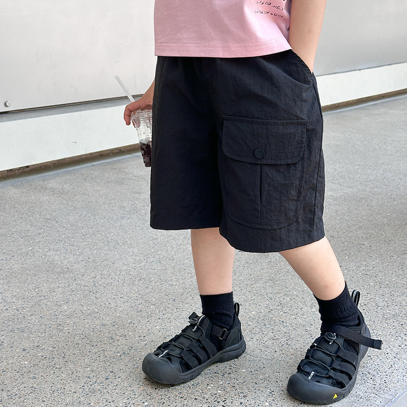 아이모베이베이 아동용 나일론 주름 버클 워싱 5부 바지 2026 여름 남아 여아 다용도 시원한 속건 반바지