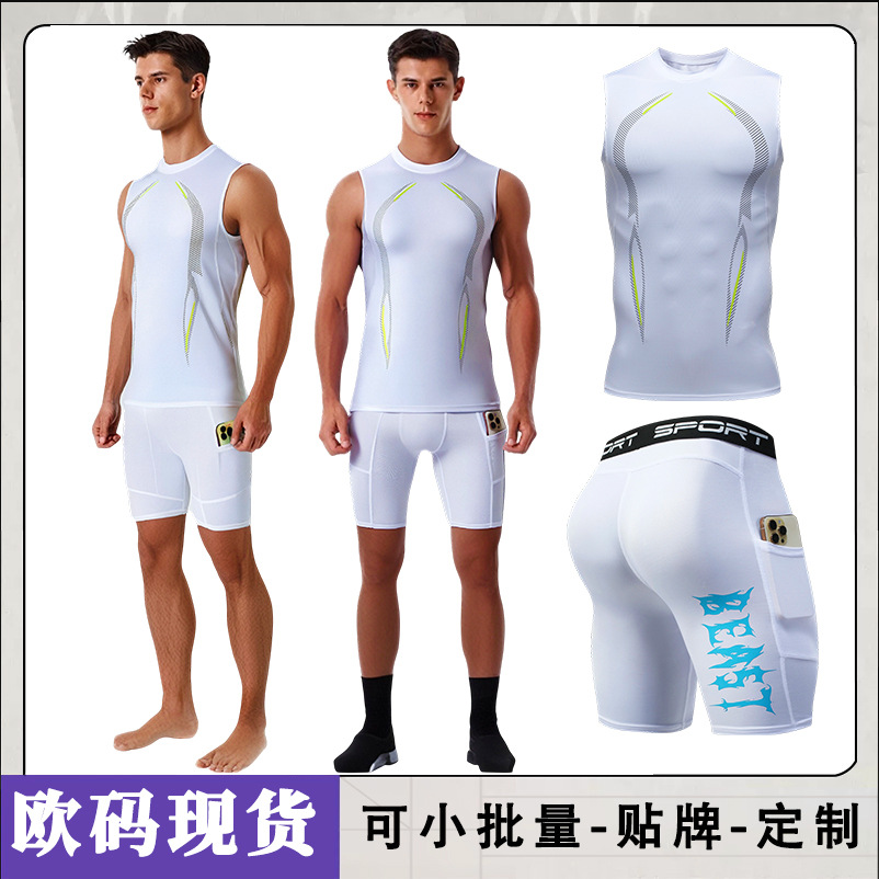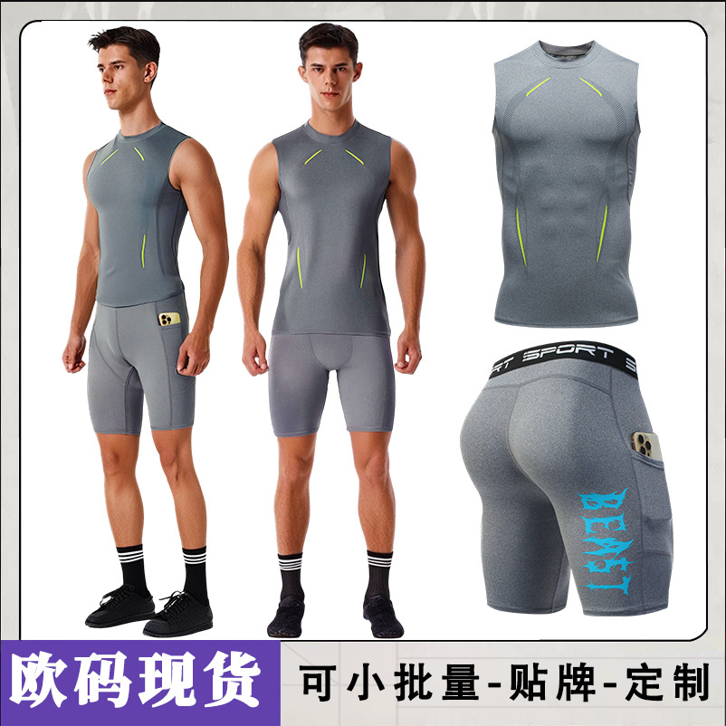 스포츠 슈트 남성 피트니스 의류 조끼 반바지 스포츠 슈트 남성 피트니스 의류 조끼 반바지 러닝 장비