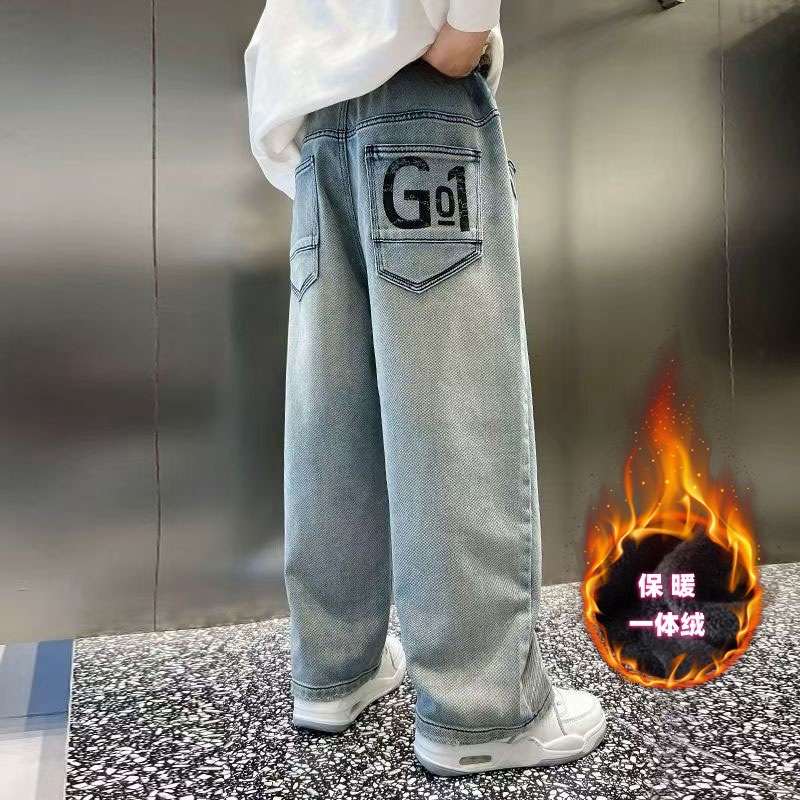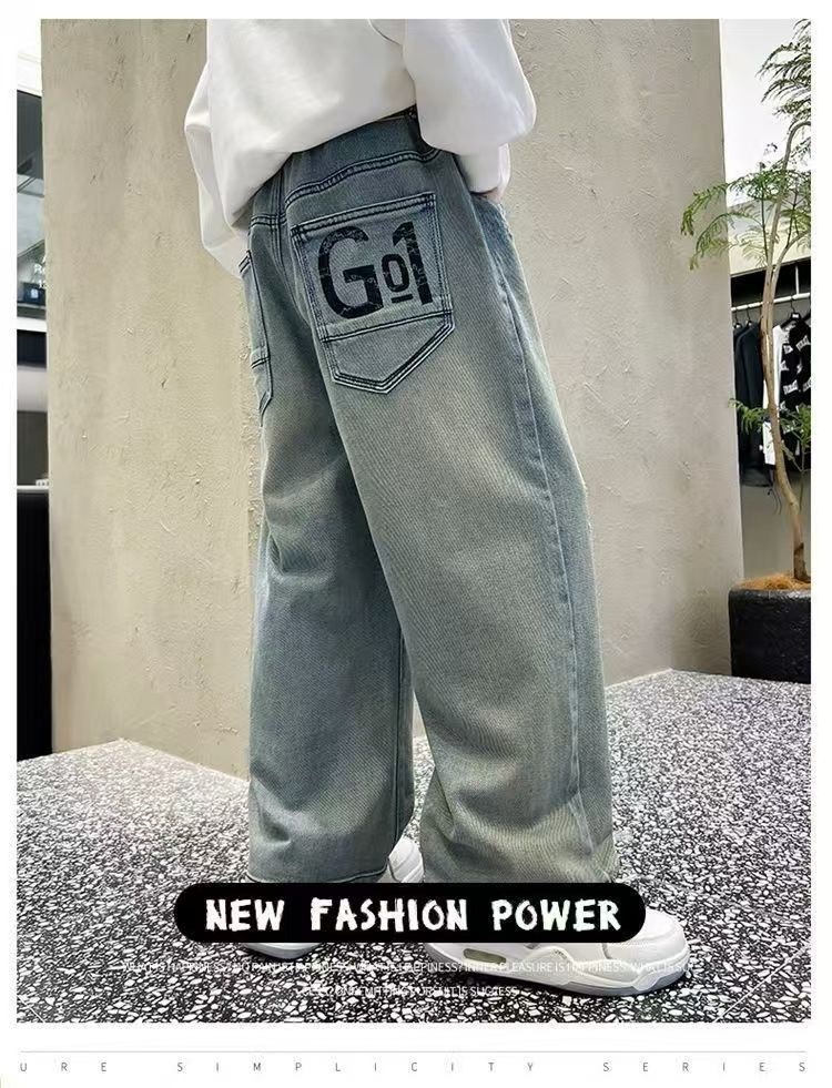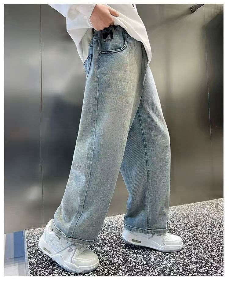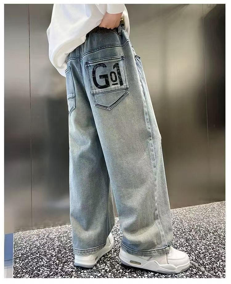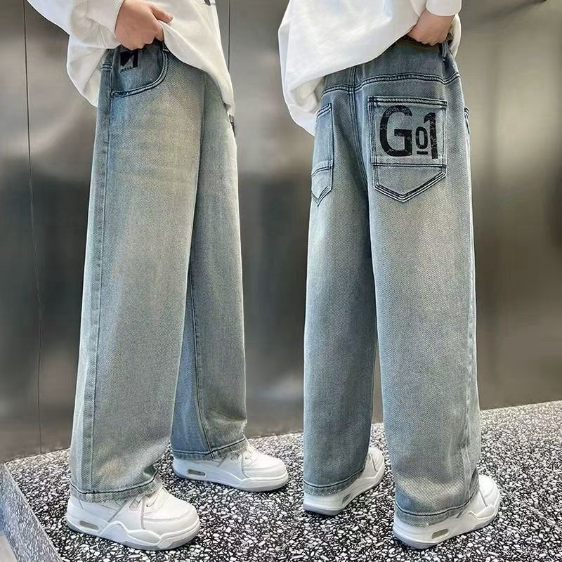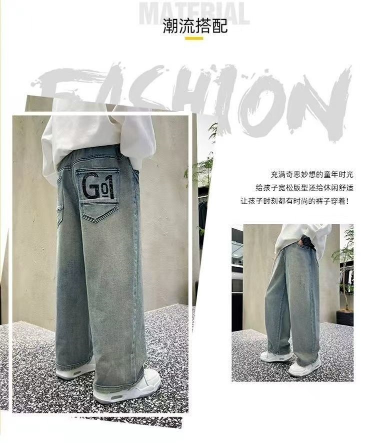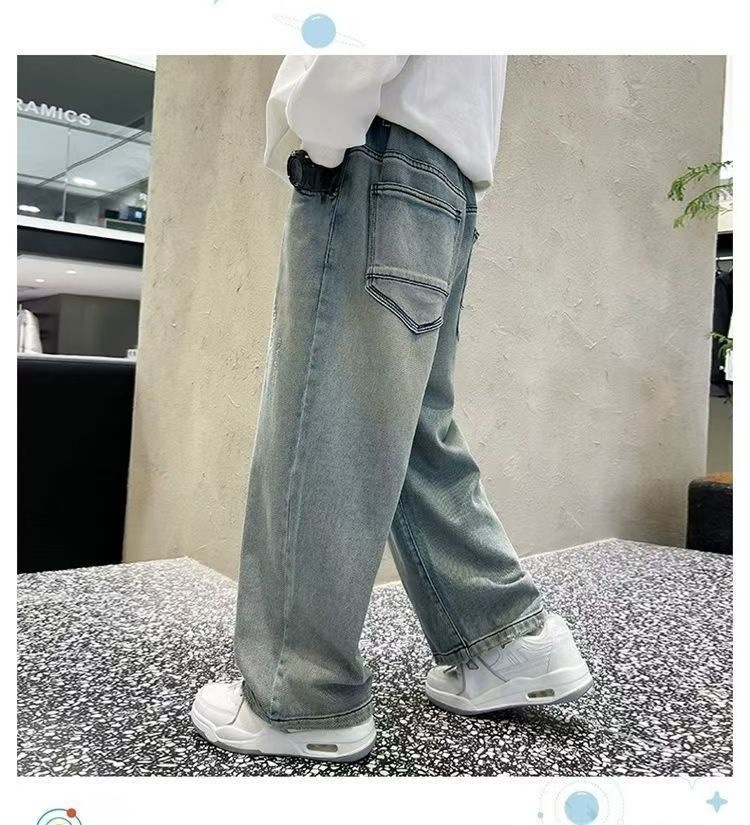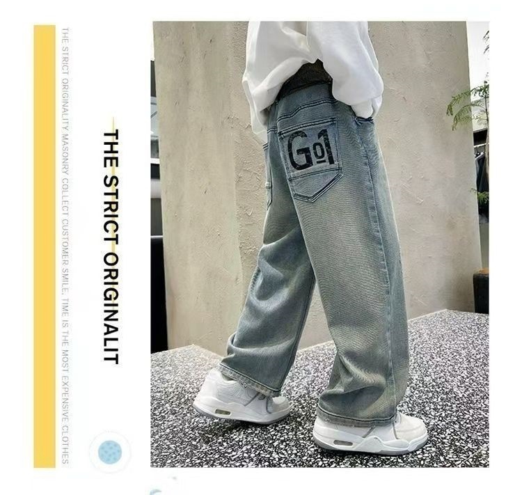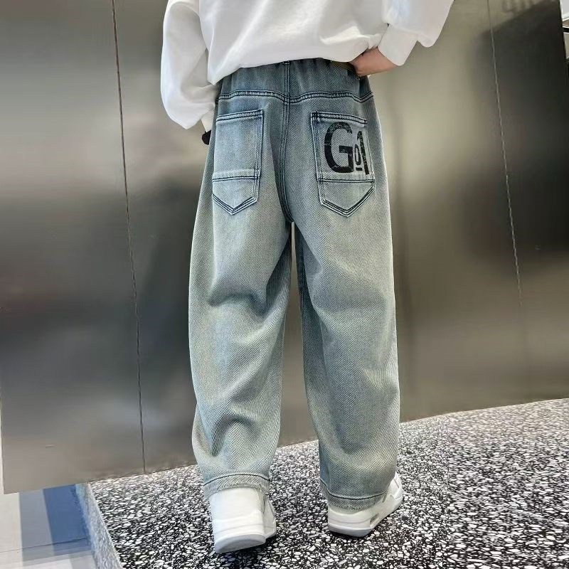 남아용 바지 2024년 봄 가을 신작 남아용 스트레이트 루즈하고 멋진 중대형 아동용 청바지스토어 가기