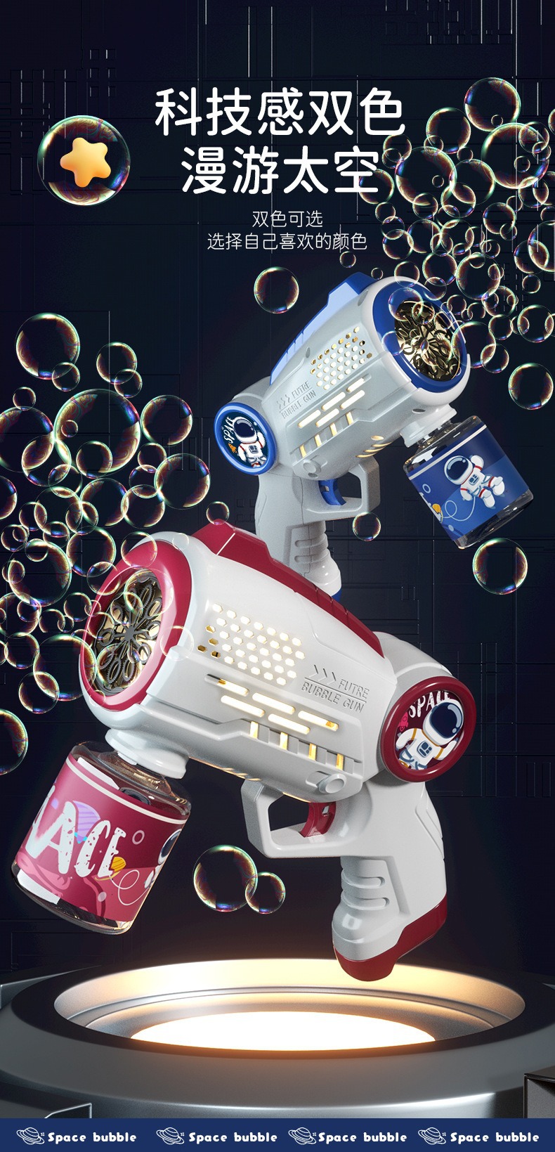 공장 직접 공간 거품 기계 어린이 자동 휴대용 전기 다공성 개틀링 거품 총 장난감 국경스토어 가기