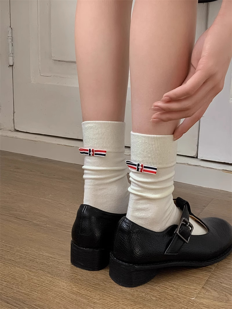 -2025 새로운 한국 스타일 리본 활 패션 틈새 나선형 양말 가벼운 고급 양말 여성 양말면 양말스토어 가기