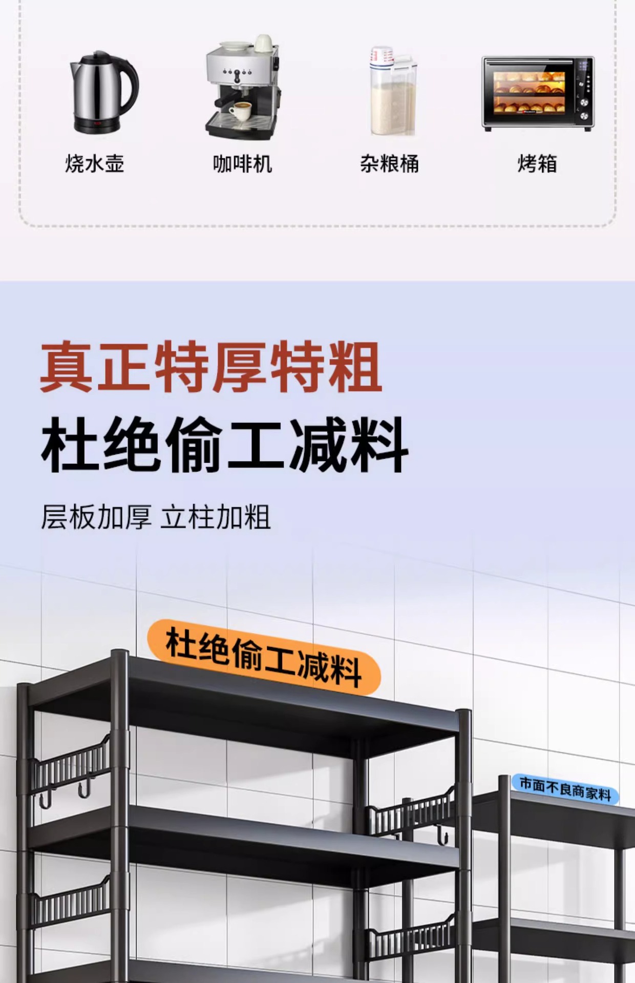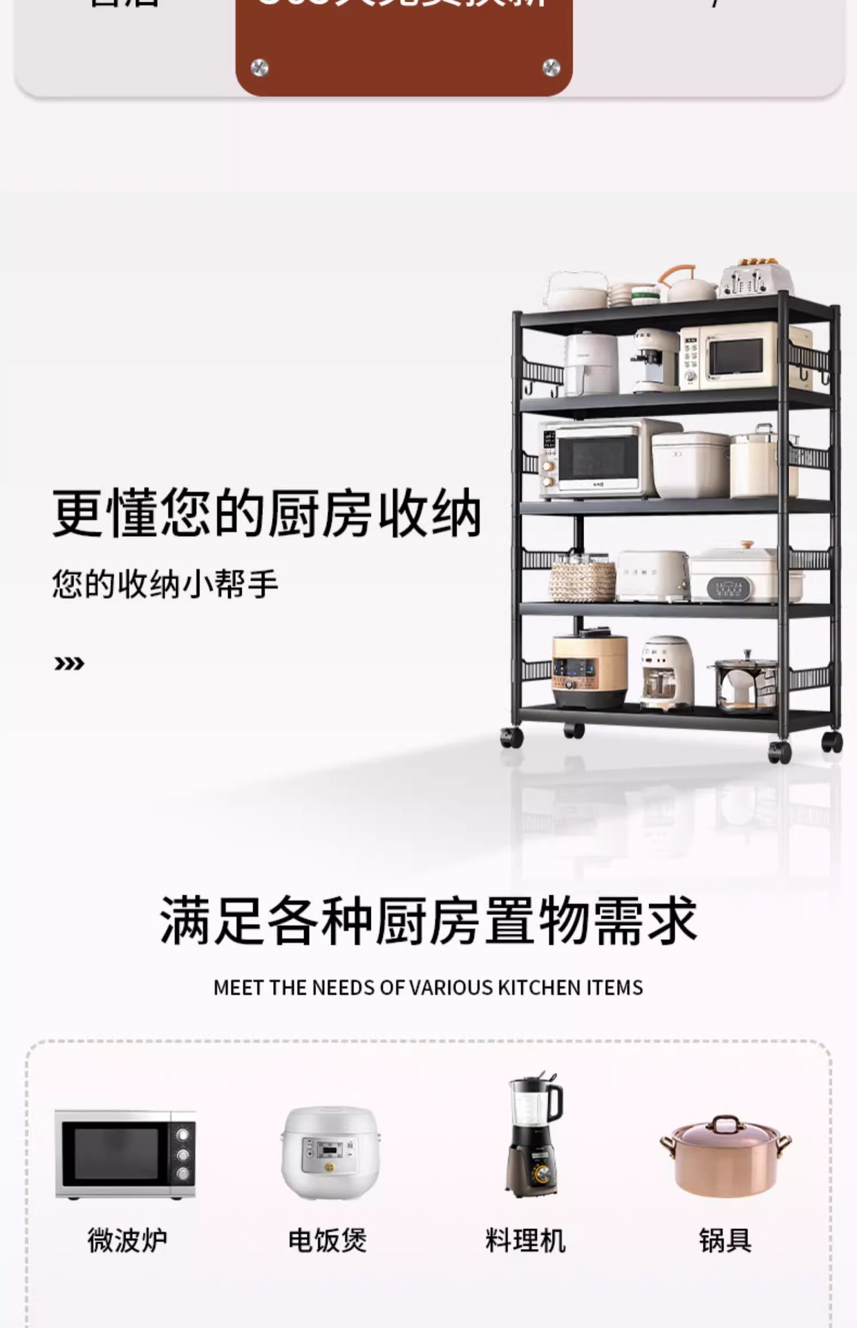 가정용 이동식 주방 전자 레인지 냄비 보관 유물 다층 탄소강 주방 용품 보관 랙스토어 가기