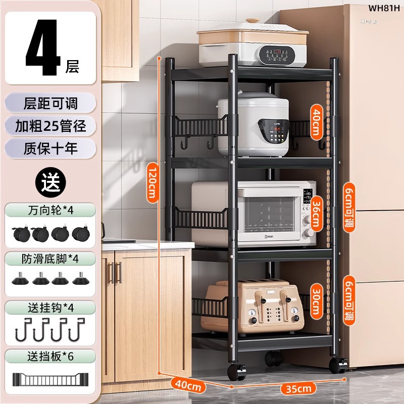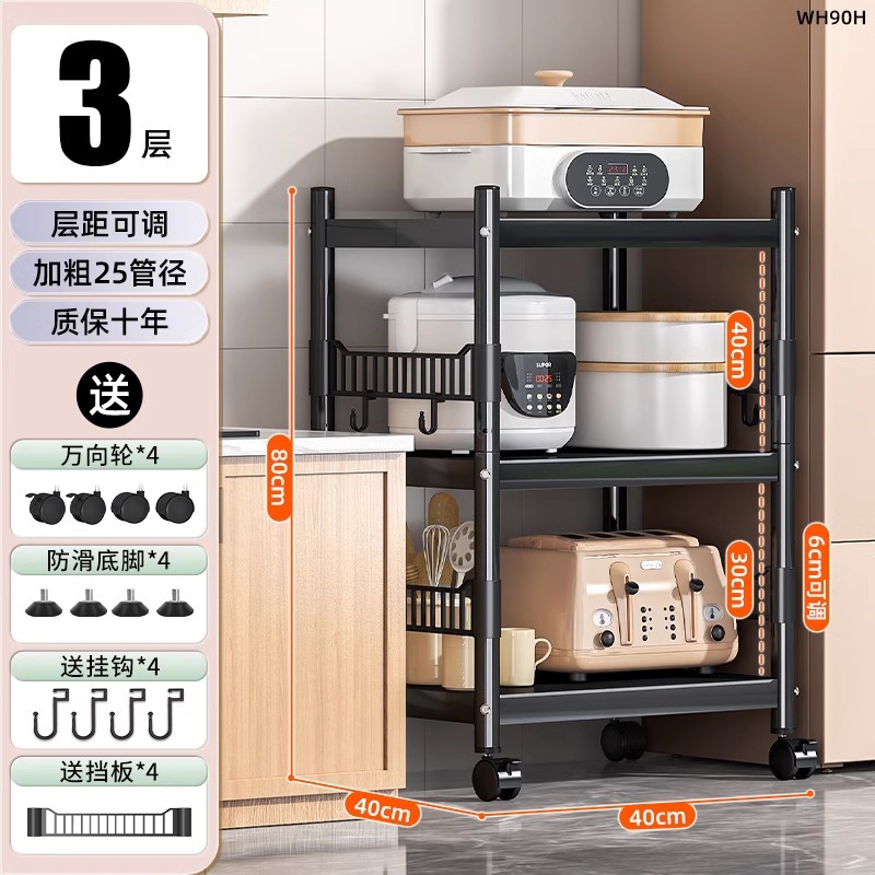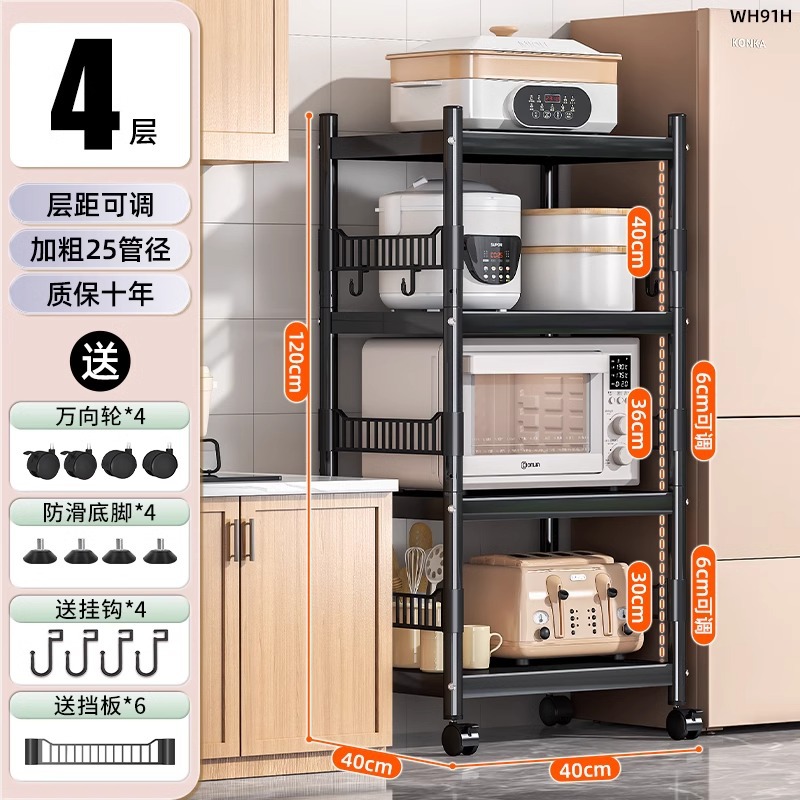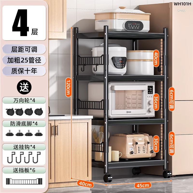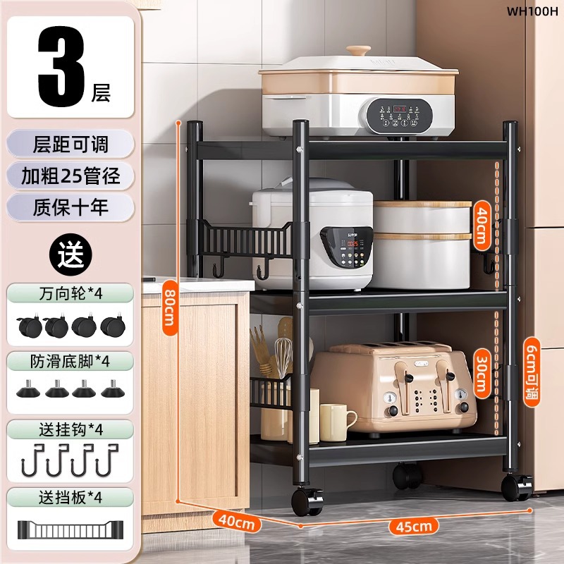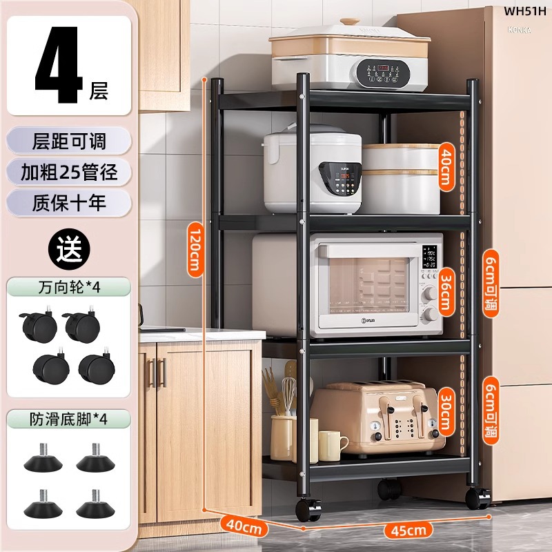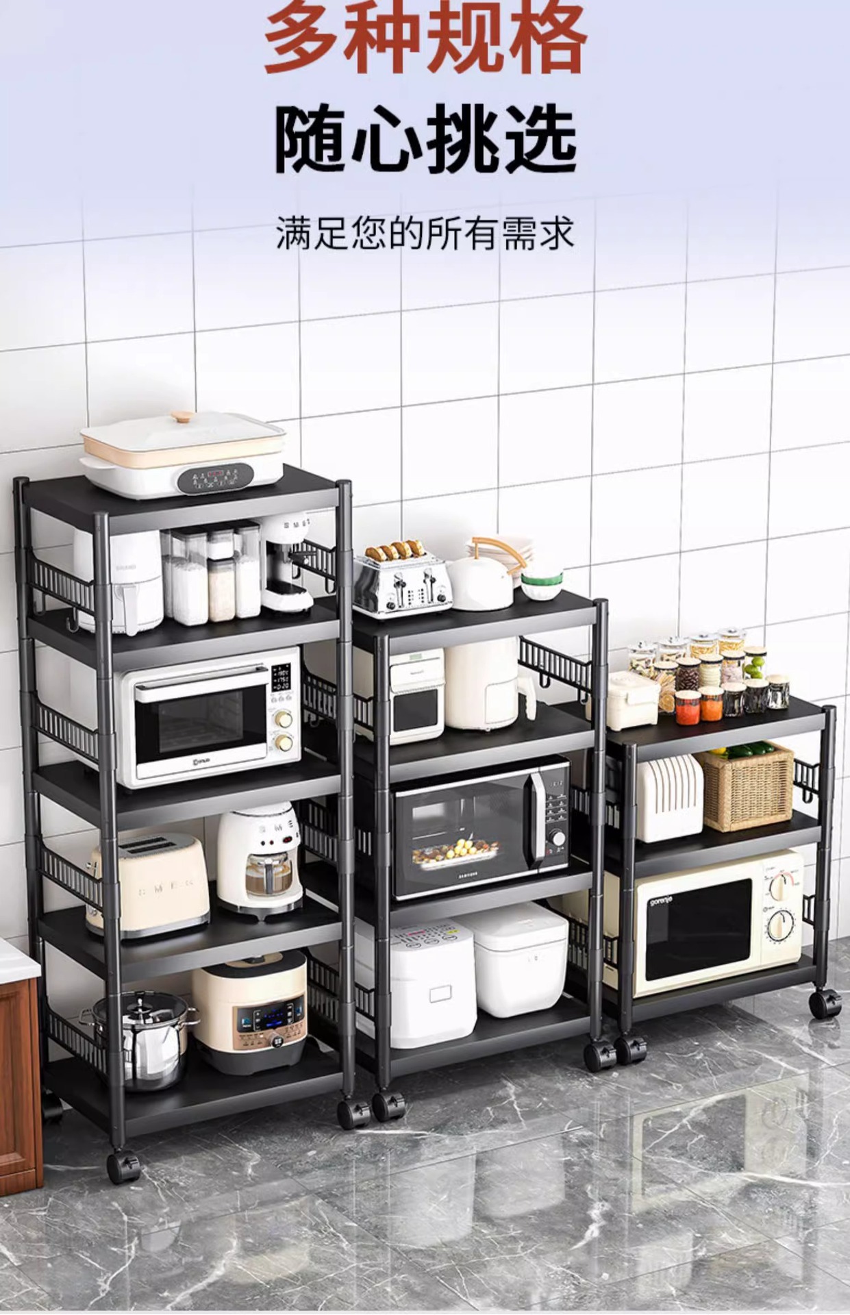 가정용 이동식 주방 전자 레인지 냄비 보관 유물 다층 탄소강 주방 용품 보관 랙