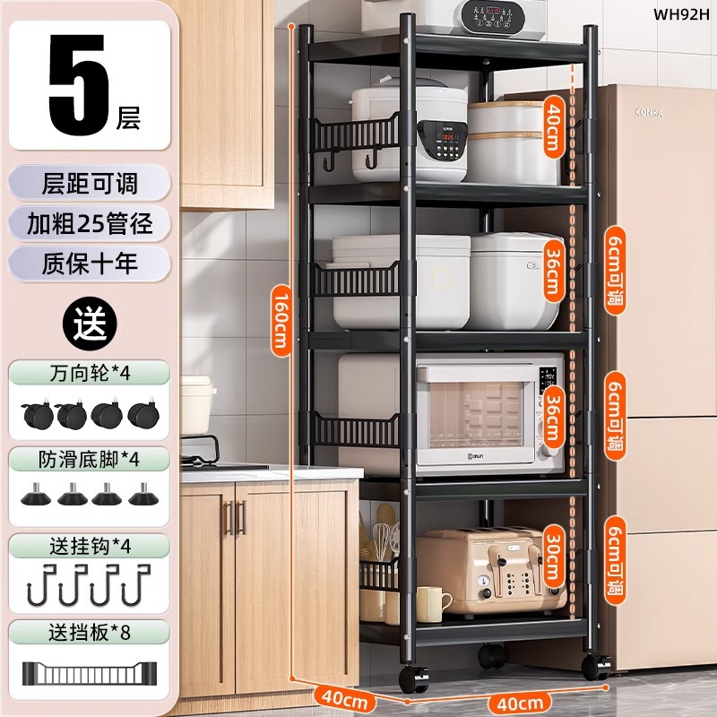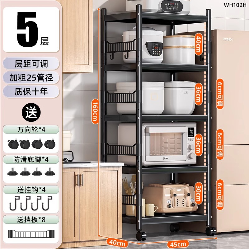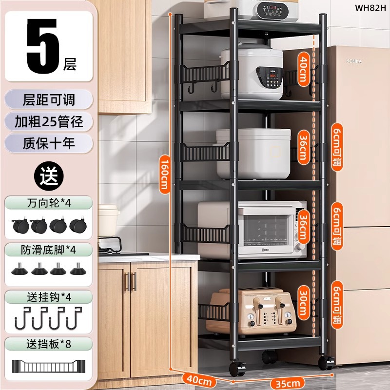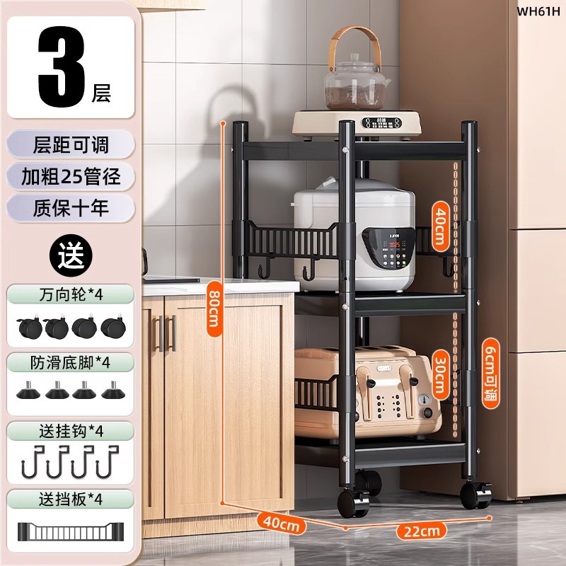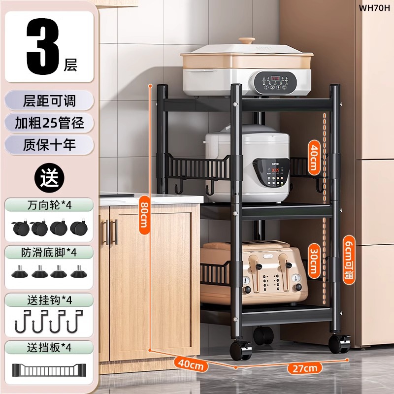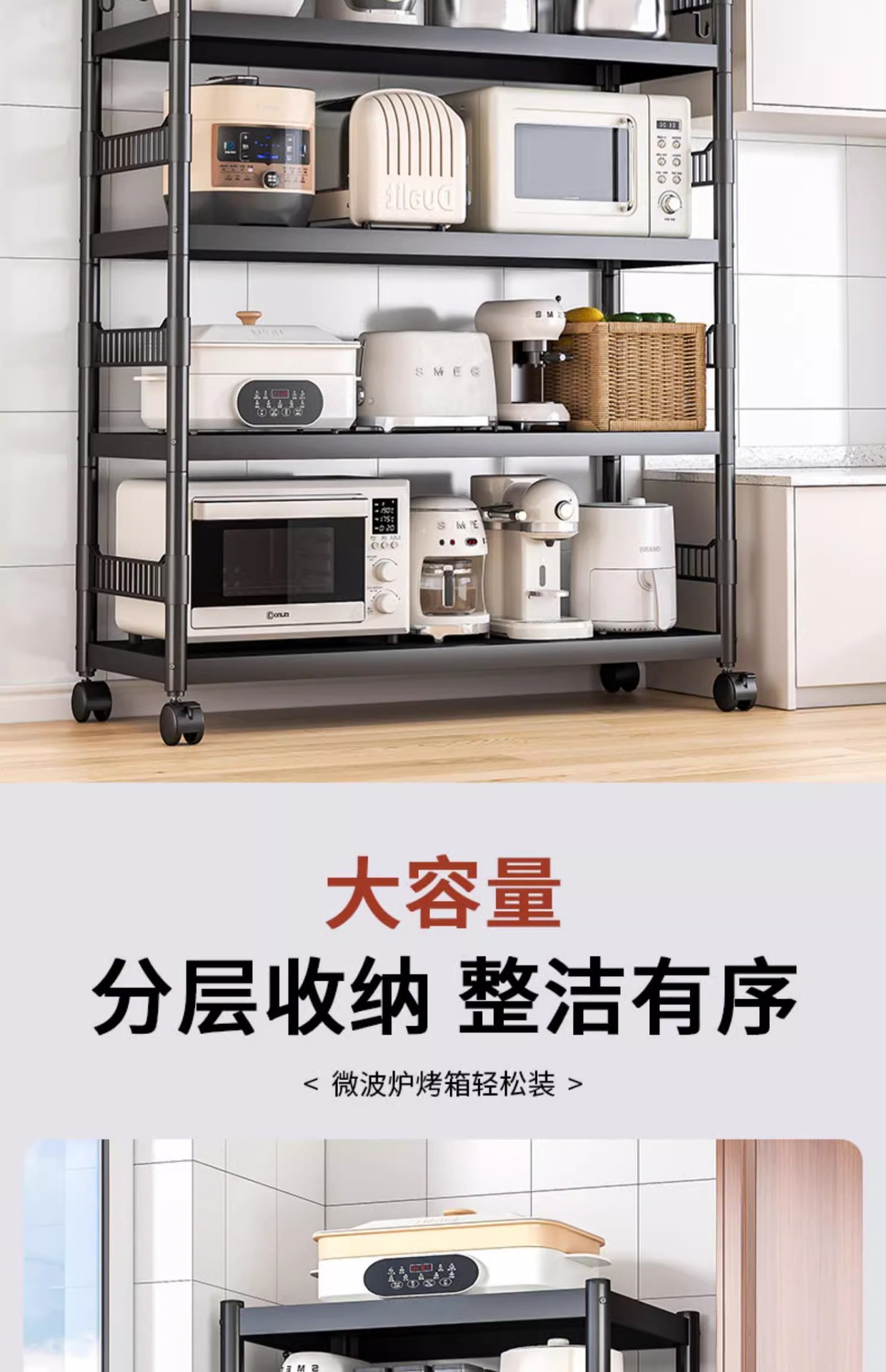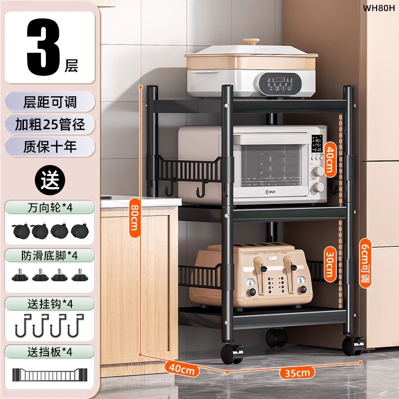 가정용 이동식 주방 전자 레인지 냄비 보관 유물 다층 탄소강 주방 용품 보관 랙