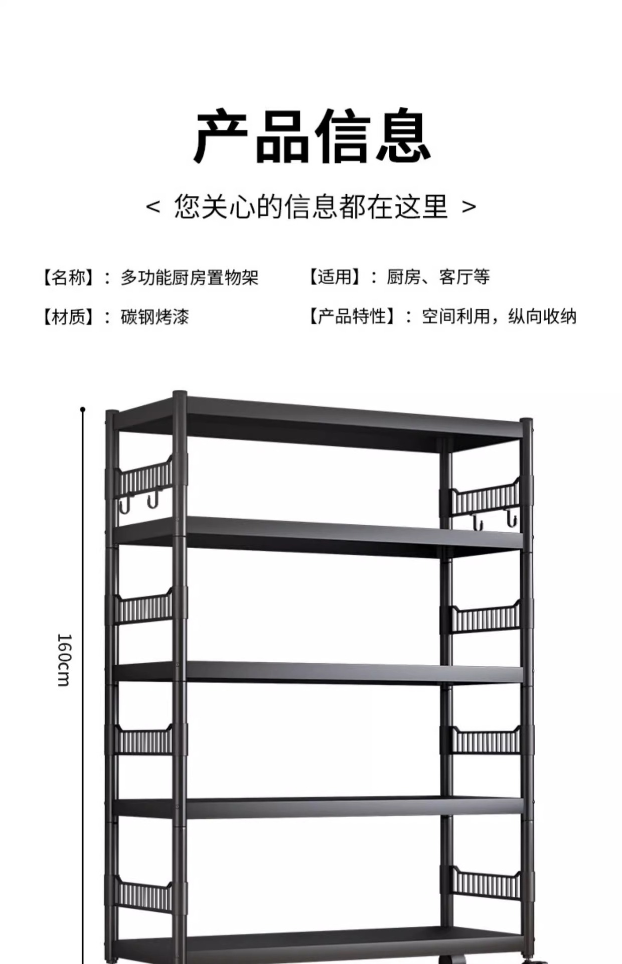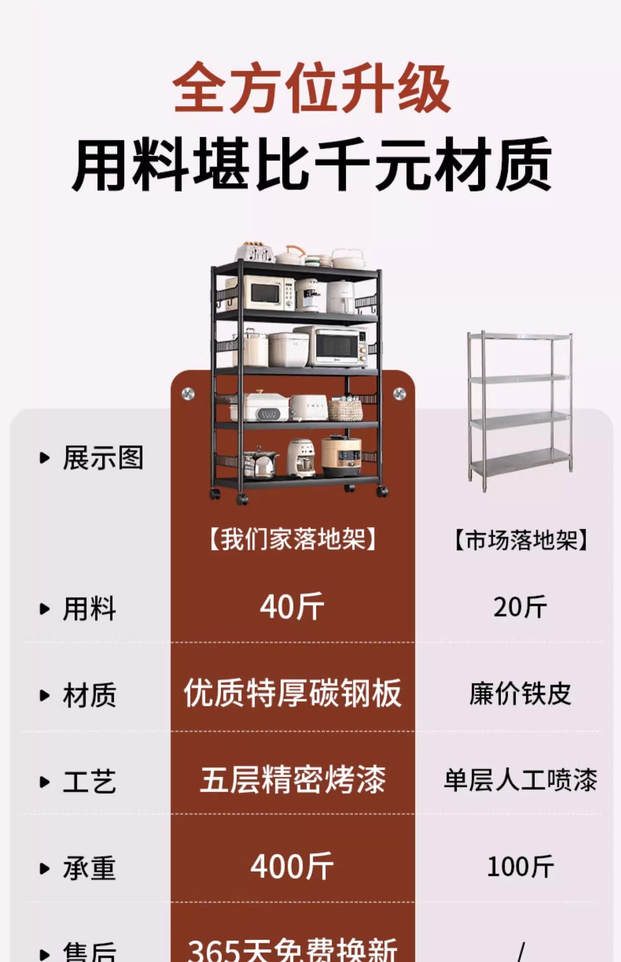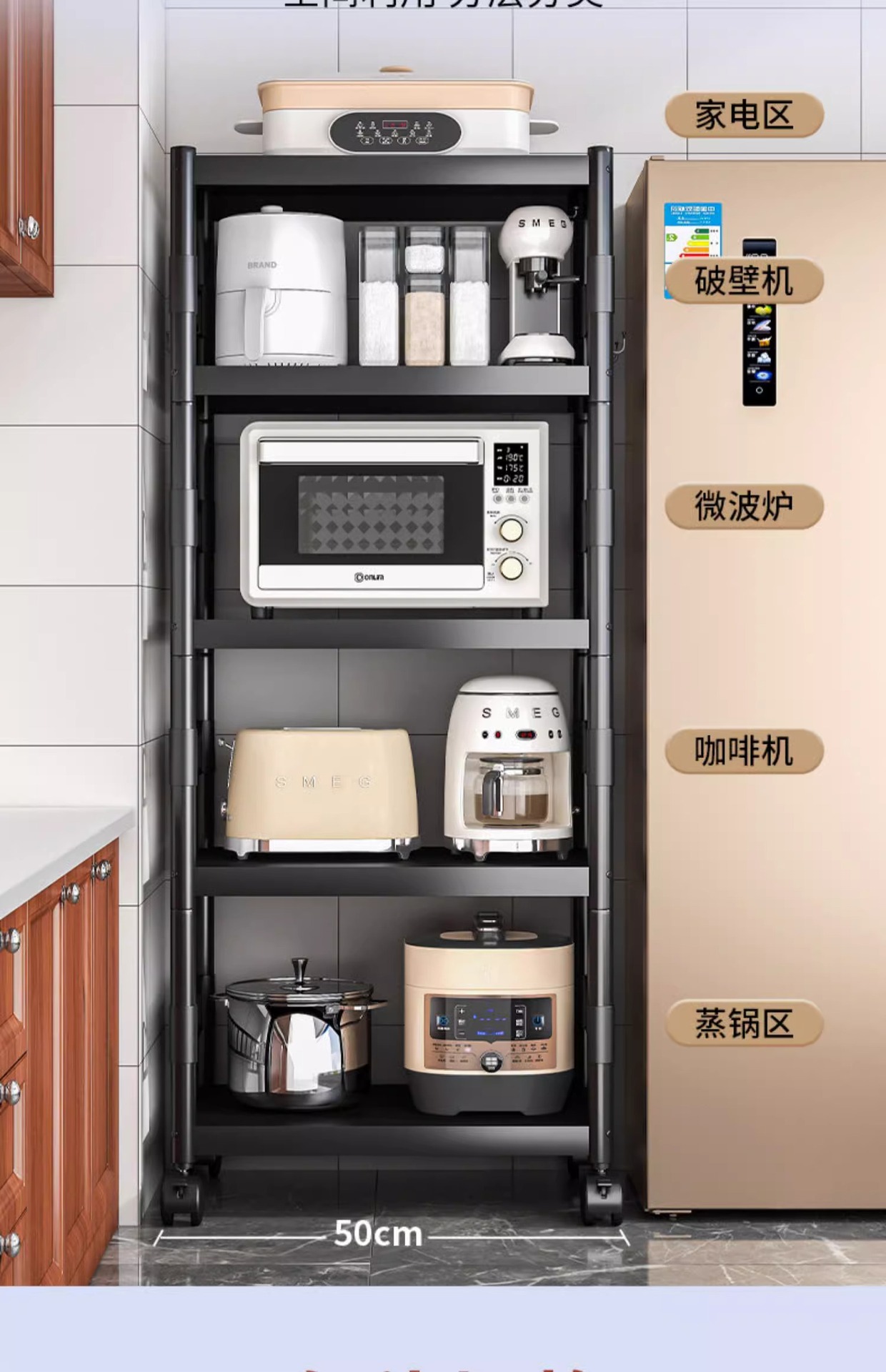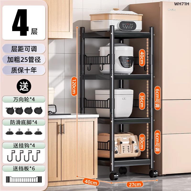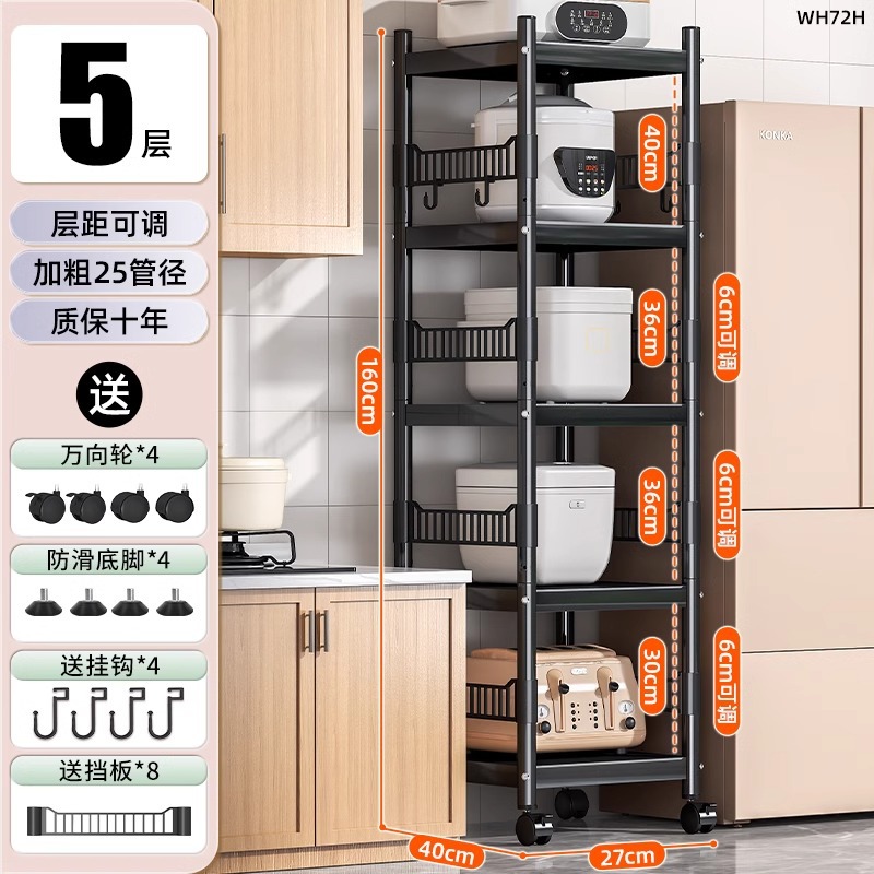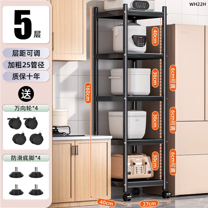 가정용 이동식 주방 전자 레인지 냄비 보관 유물 다층 탄소강 주방 용품 보관 랙
