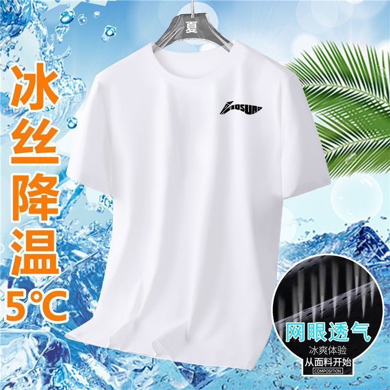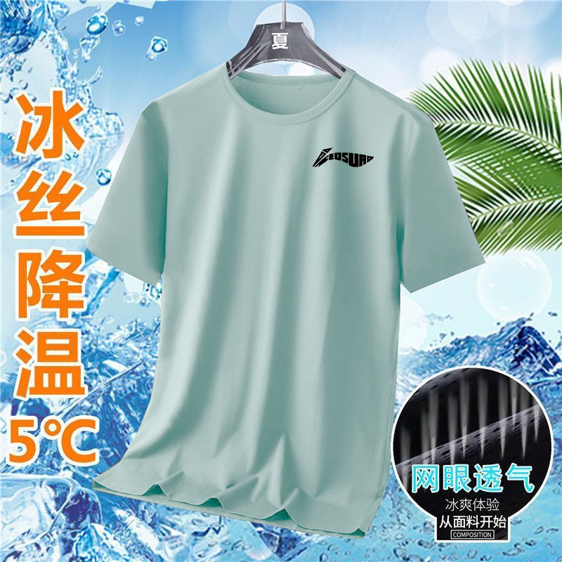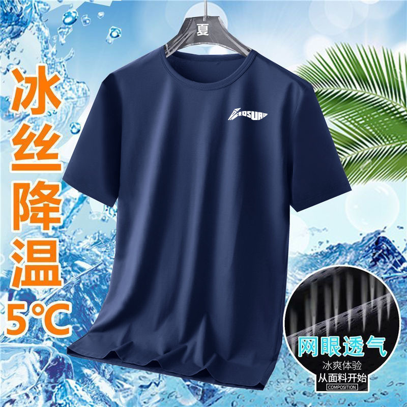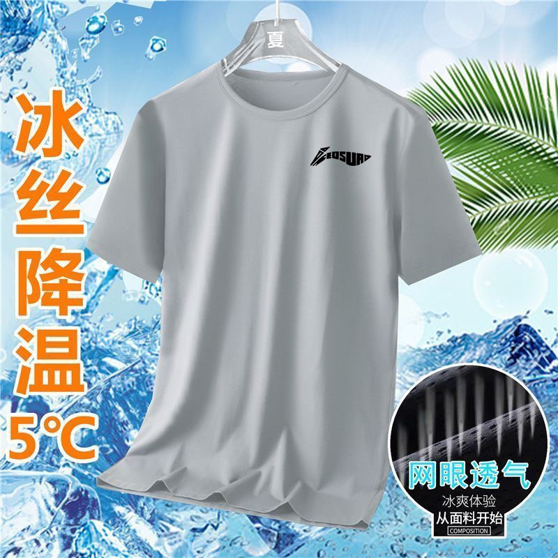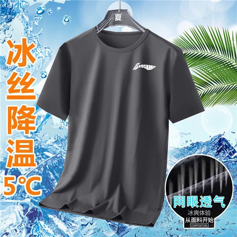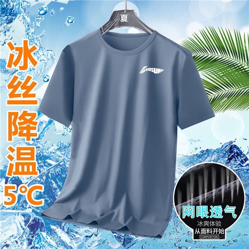 여름 아이스 실크 빠른 건조 반팔 티셔츠 라운드 넥 반팔 티셔츠 남자 여름 달리기 캐주얼 느슨한 통기성 탑스토어 가기
