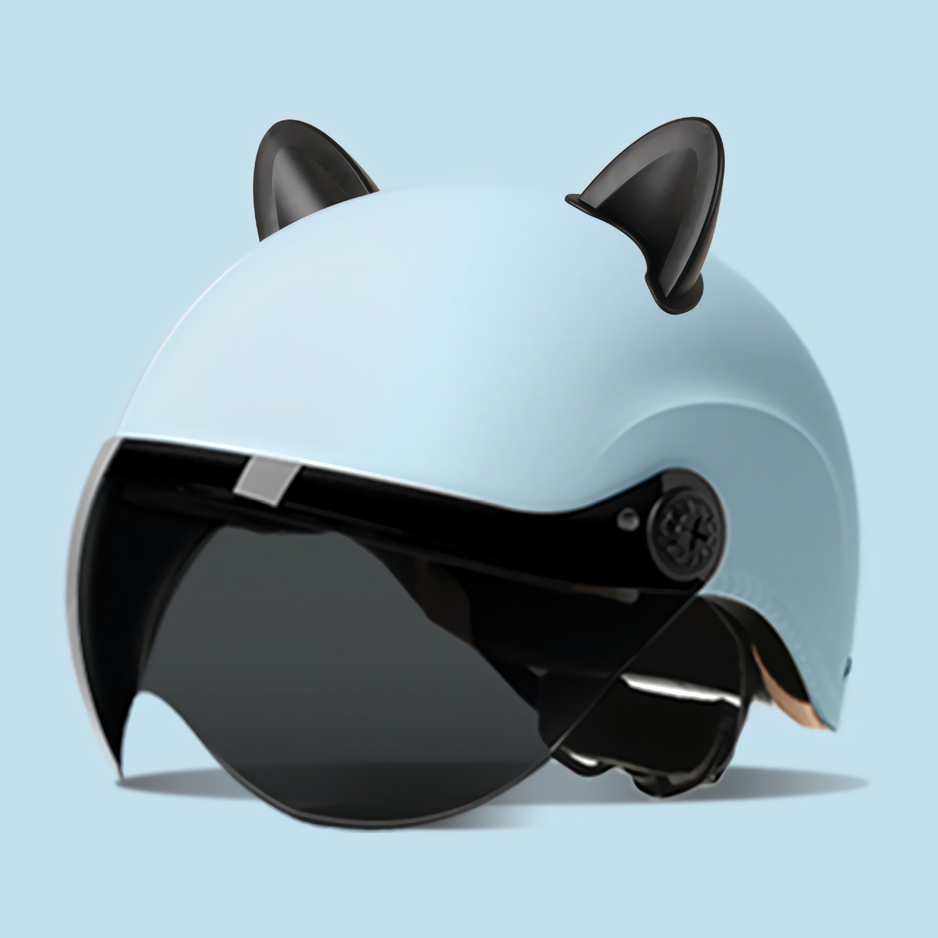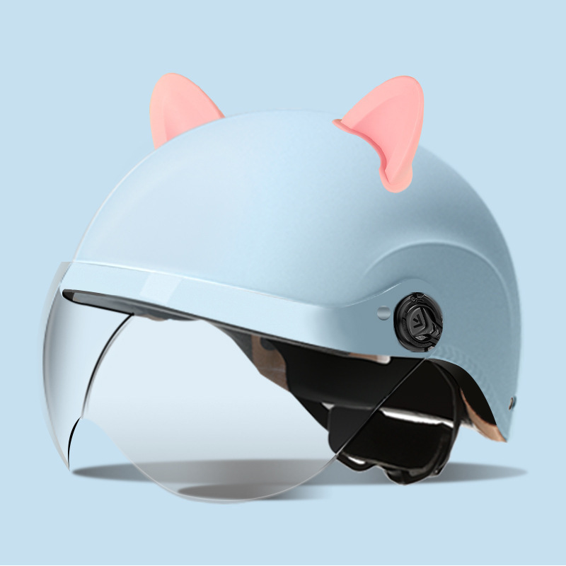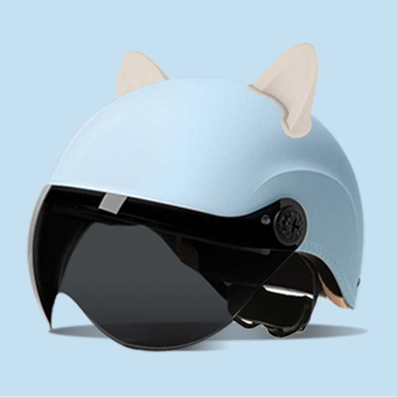 • 여름 헬멧 반투명 블루 + 여름 헬멧 투명 거울 + 액세서리 (토끼 귀 흰색)