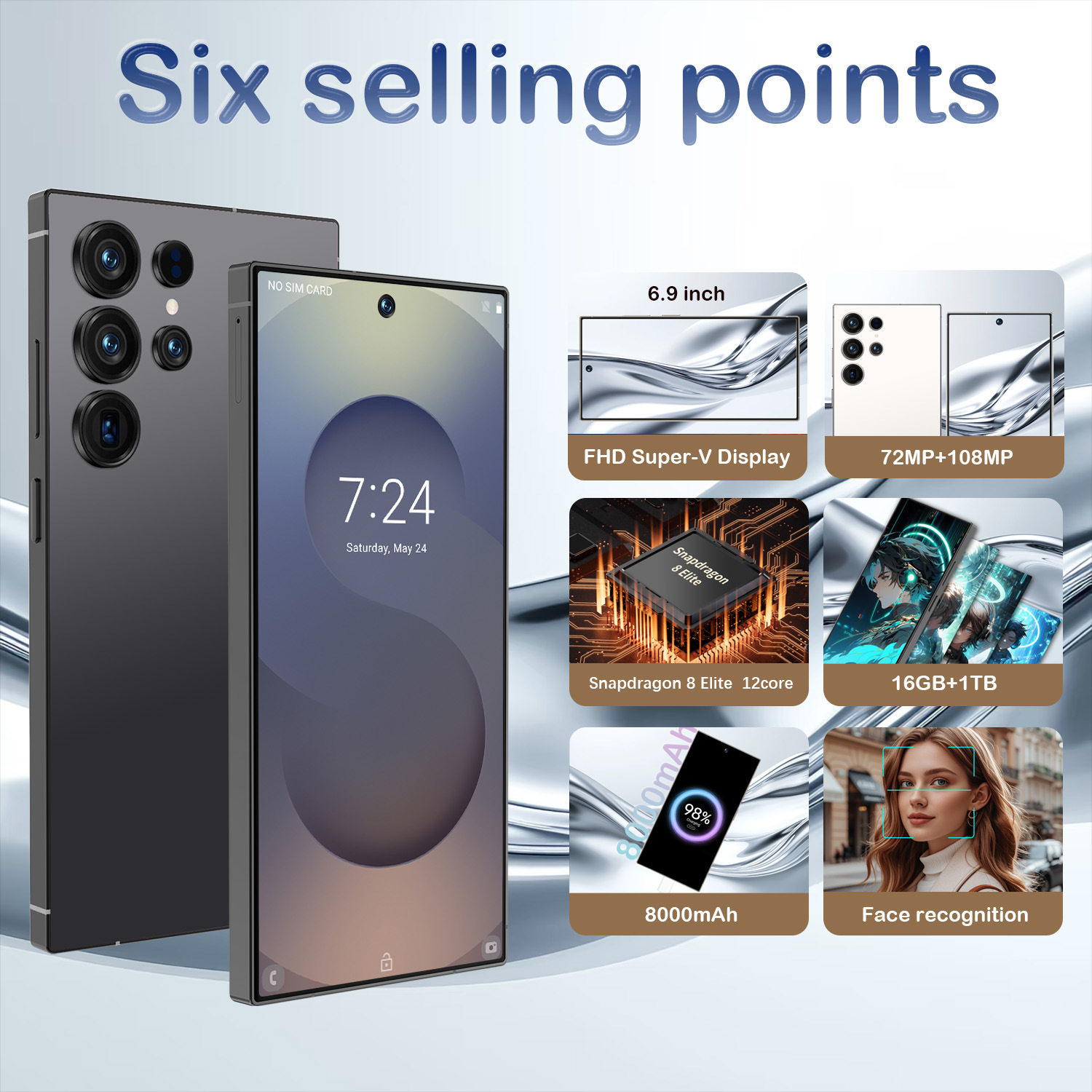 쿠고 크로스보더 스마트폰 S25 울트라 올인원 기기 6.9inch 진정한 4G 옥타코어 8+128 안드로이드 12 시스템