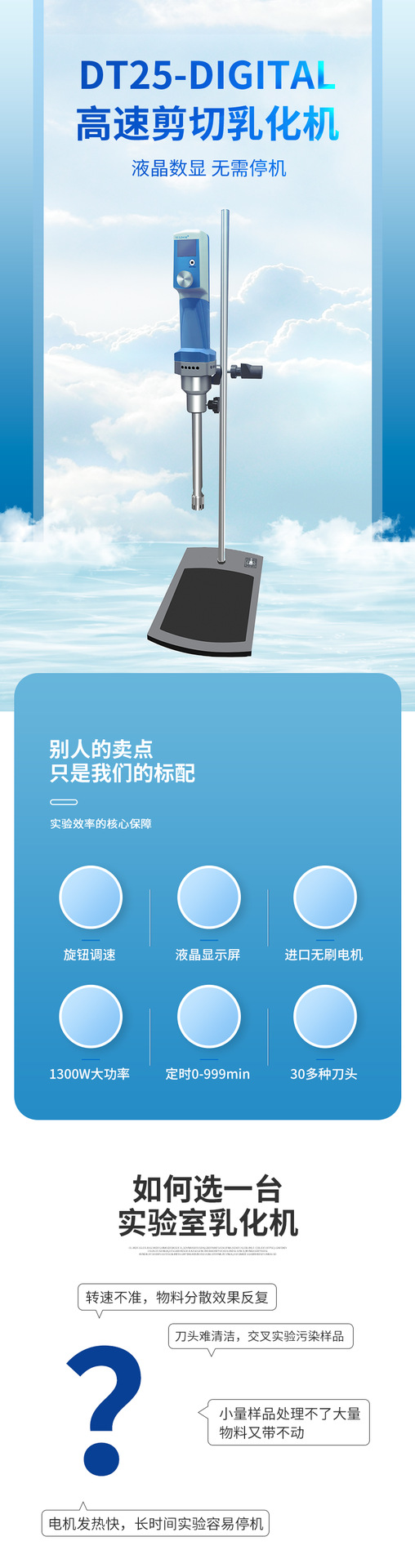 소형 실험실용 타이머식 디지털 디스플레이 분산 균질기, 고속 절단 유화기, 유제 및 크림 균질기
