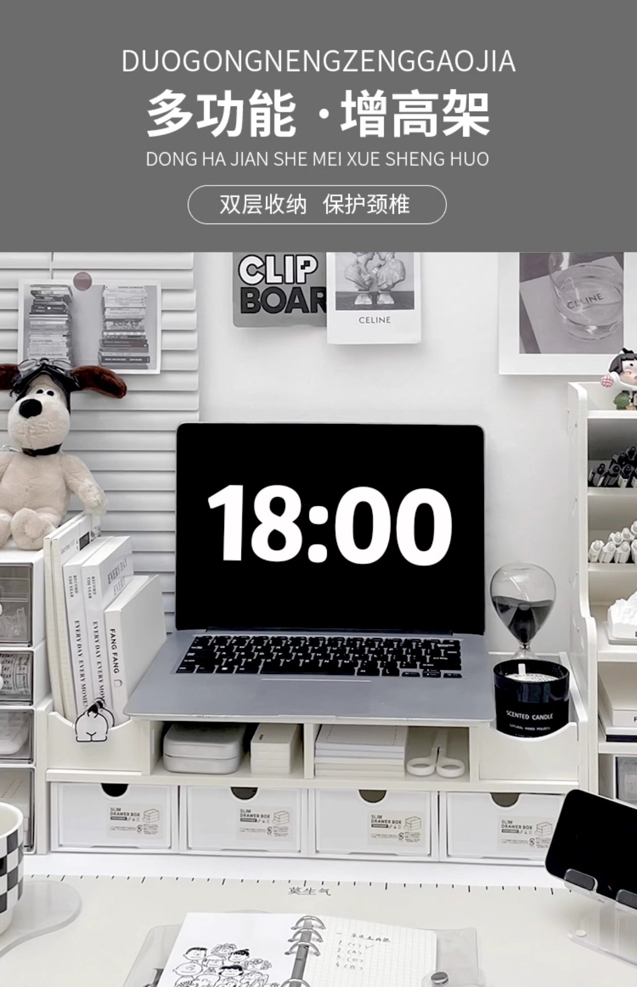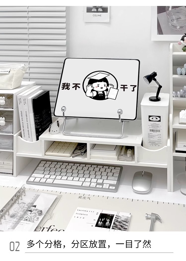 데스크탑 모니터 컴퓨터 높은 랙 더블 레이어 디스플레이 스탠드 사무실 책상 높은 다기능 스토리지 랙스토어 가기