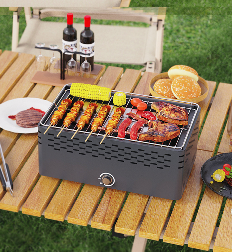 전자상거래 새로운 튀김 및 그릴 이중 목적 휴대용 바베큐 그릴 야외 캠핑 그릴 휴대용 무연 바베큐 그릴 야외 그릴