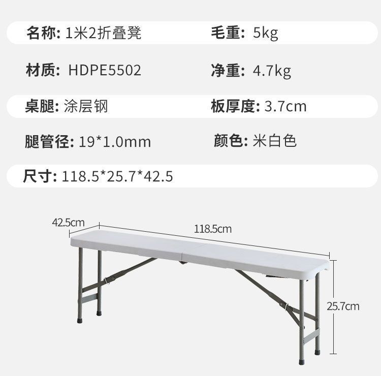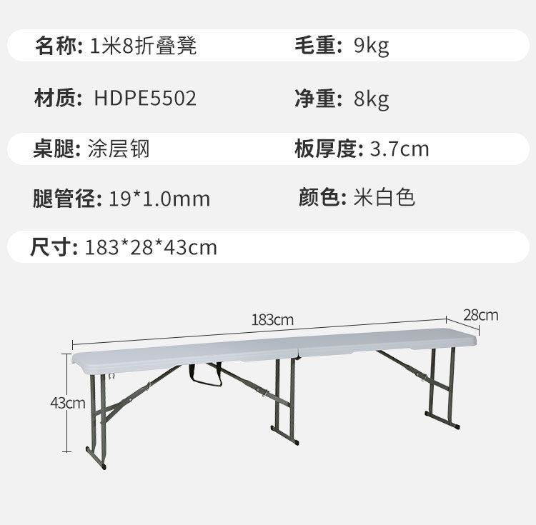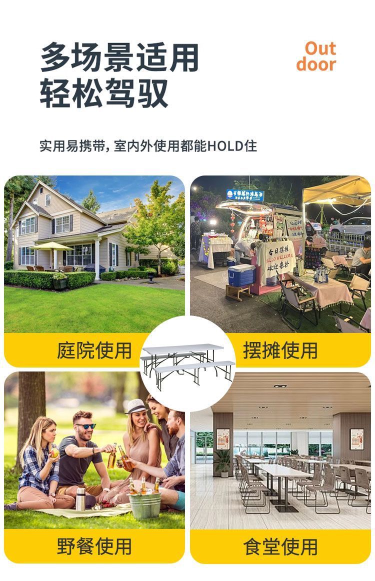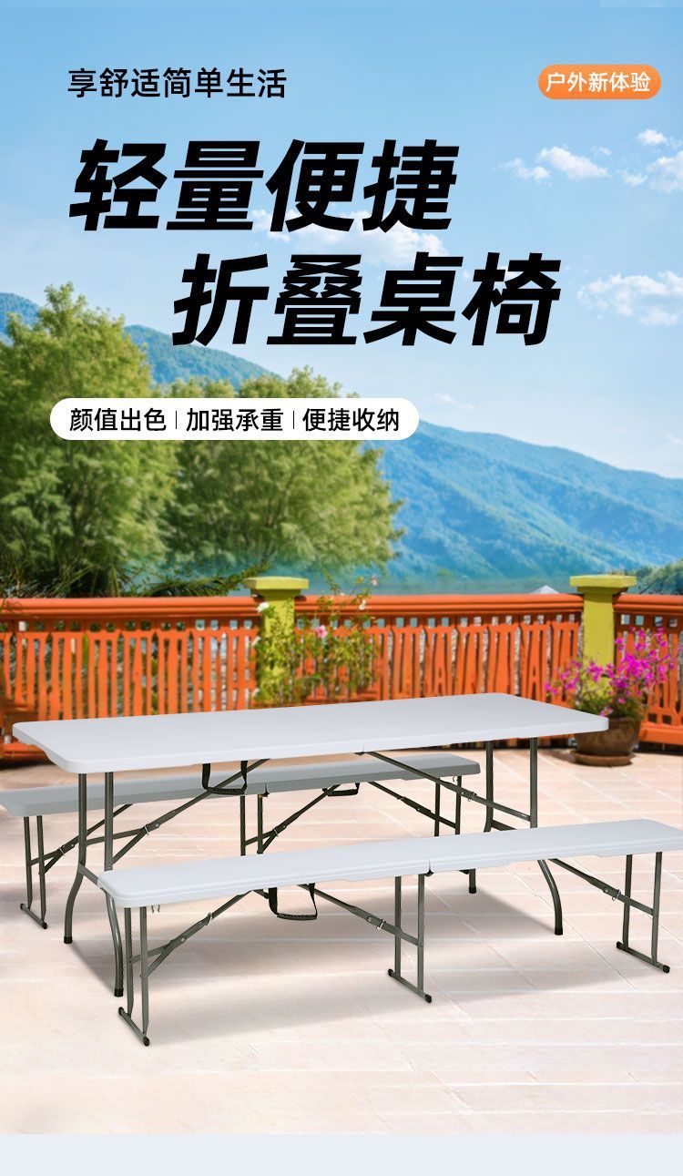 Vsv 접이식 긴 벤치 작은 테이블 식탁 간단한 휴대용 야외 스톨 활동 직사각형 긴 테이블과 의자스토어 가기