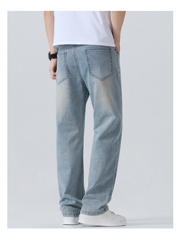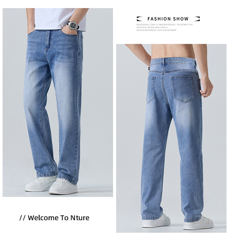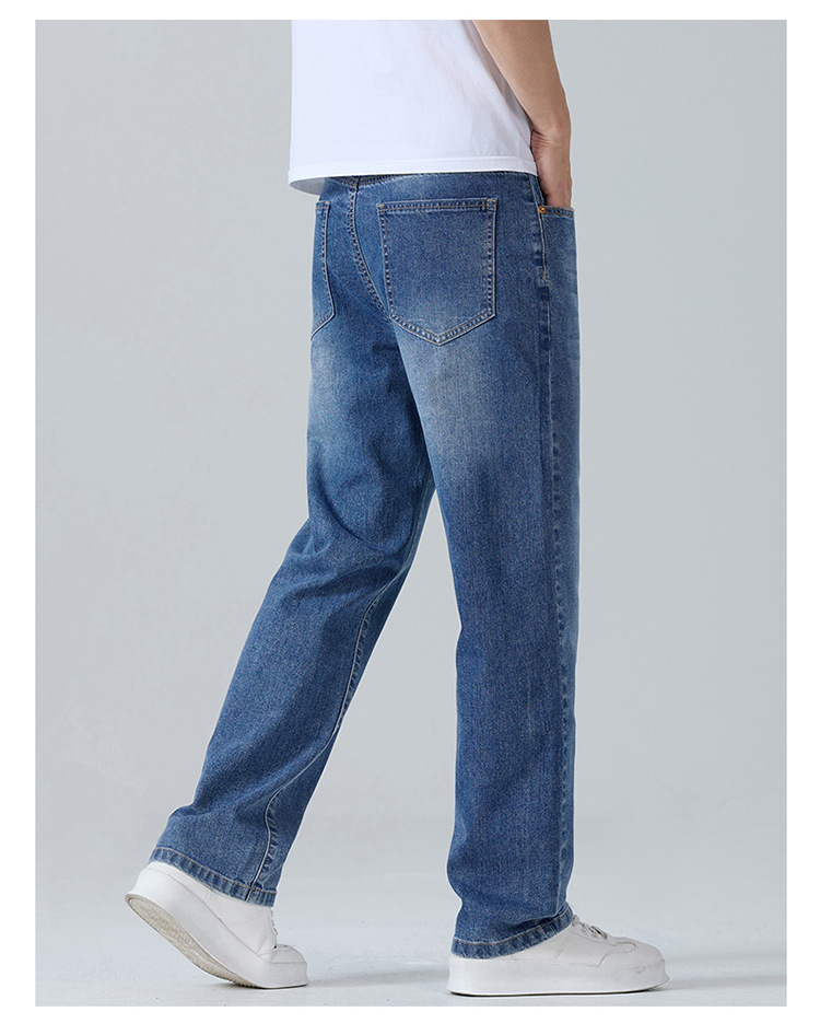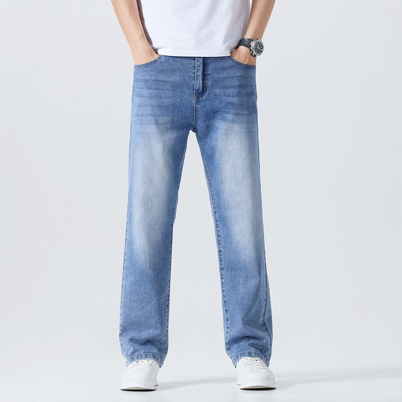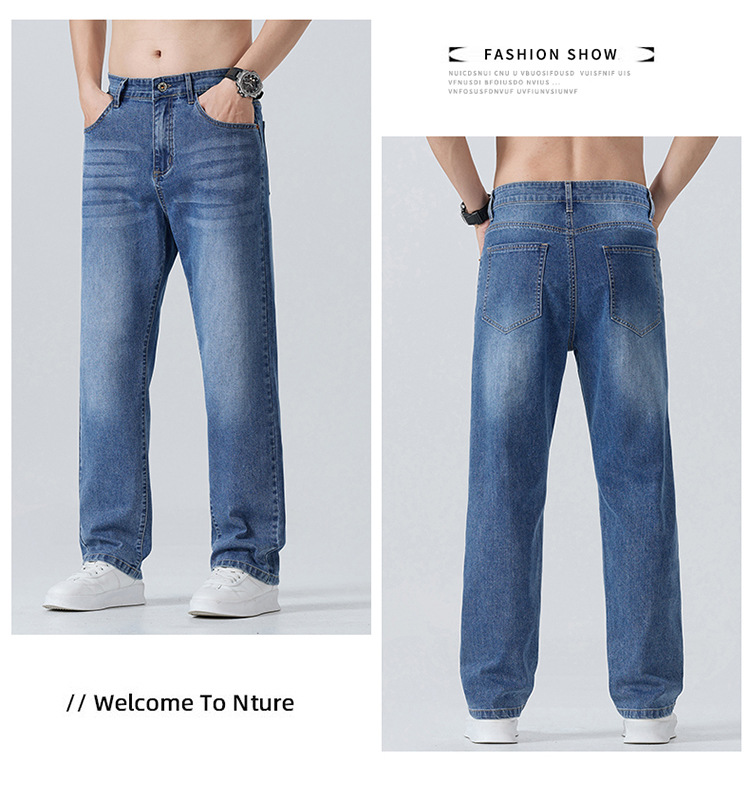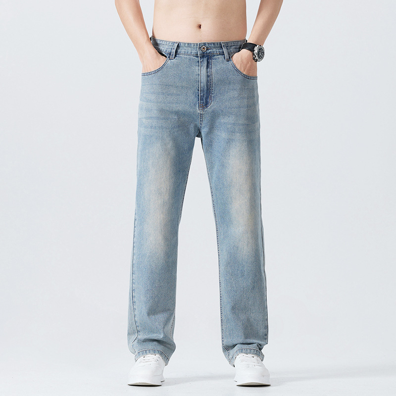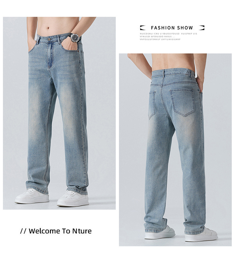 남성용 여름 신상 스타일 쿨하고 멋진 워싱 와이드 청바지, 심플하고 패셔너블하며 루즈하고 슬림하며 캐주얼한 스트레이트 팬츠스토어 가기
