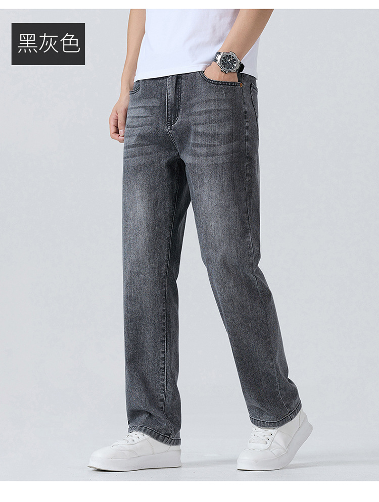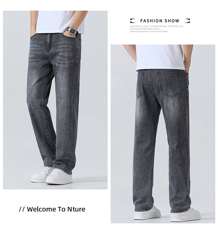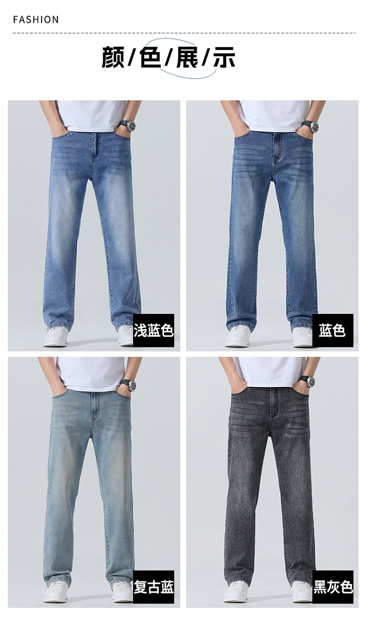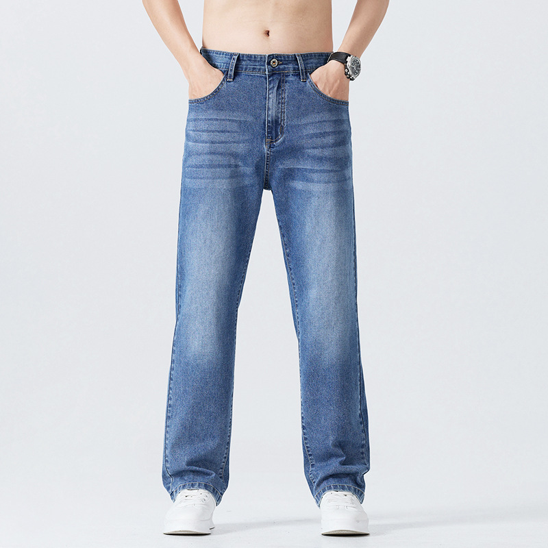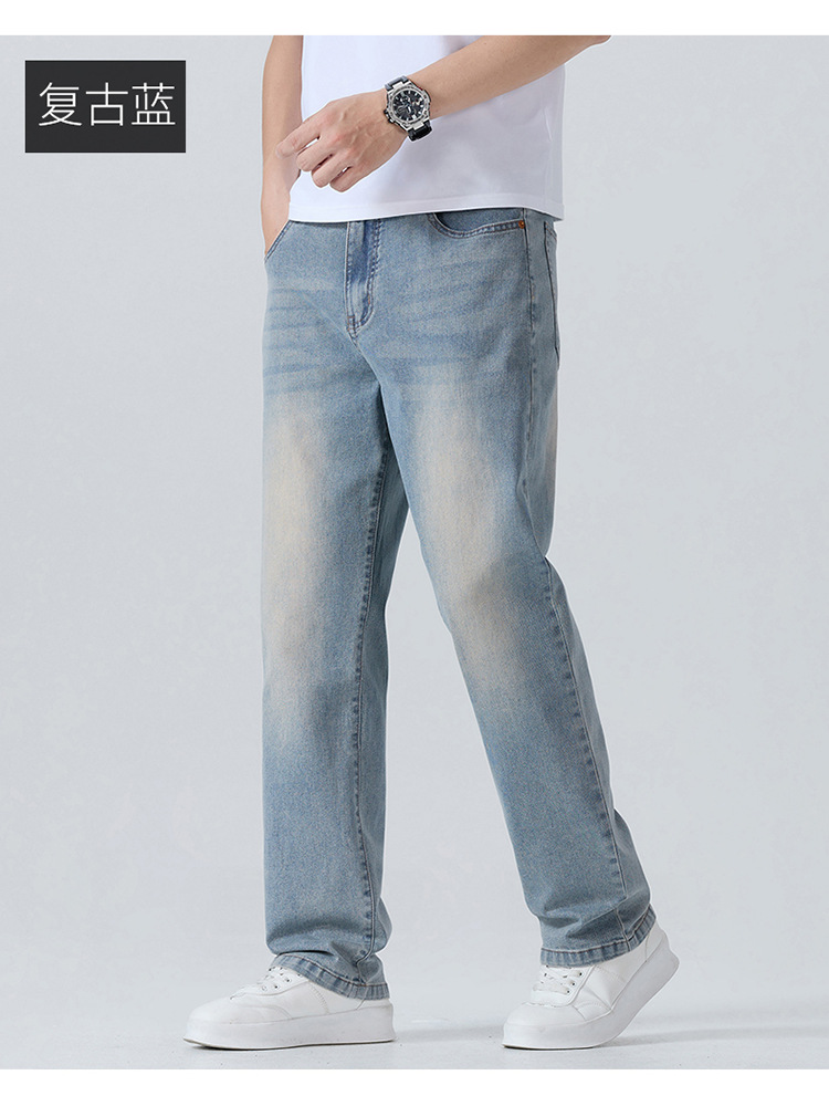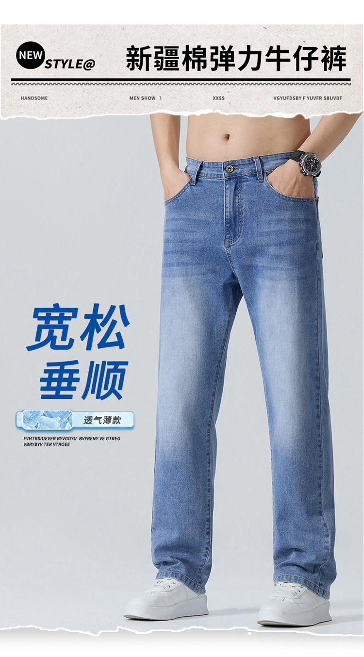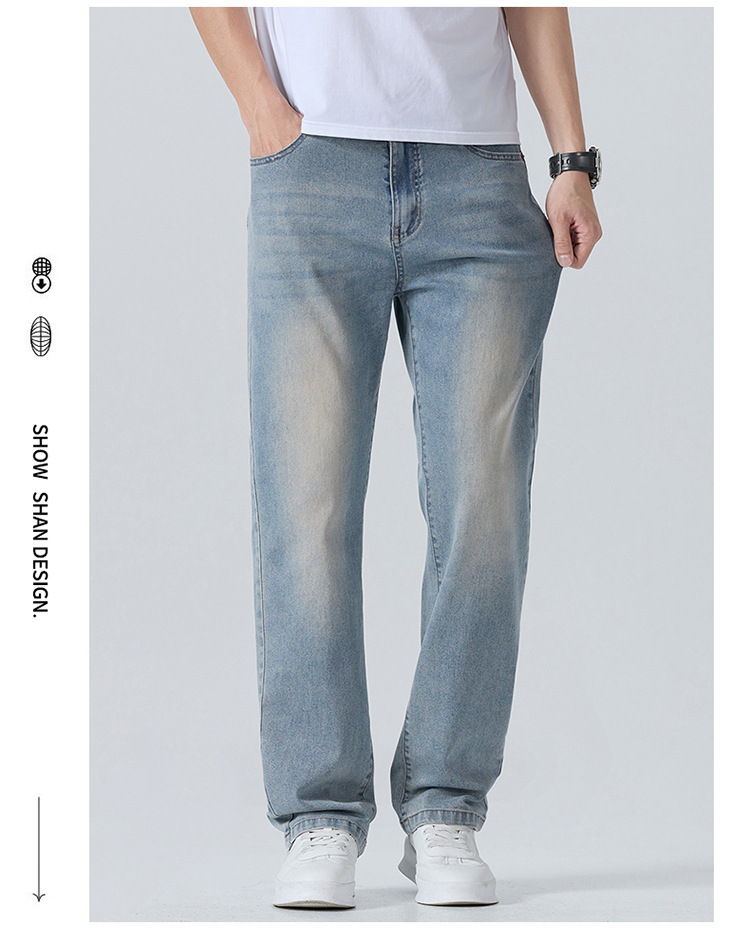 남성용 여름 신상 스타일 쿨하고 멋진 워싱 와이드 청바지, 심플하고 패셔너블하며 루즈하고 슬림하며 캐주얼한 스트레이트 팬츠스토어 가기