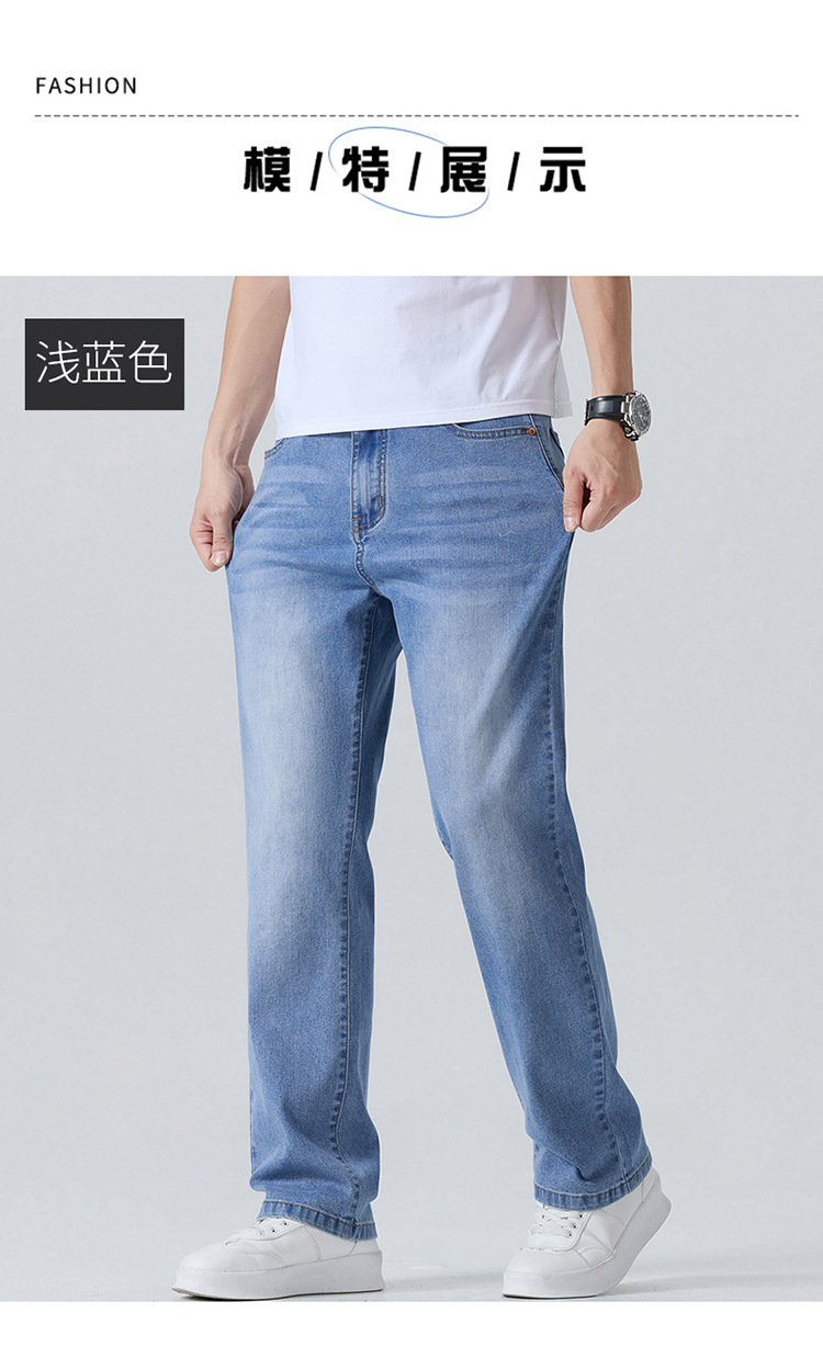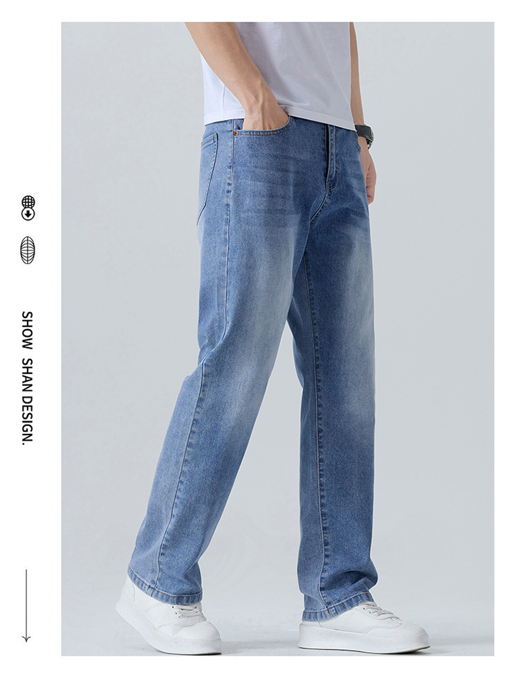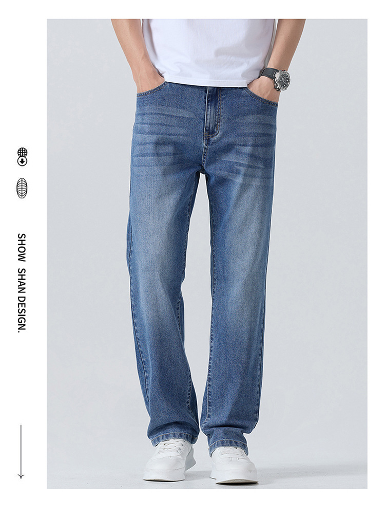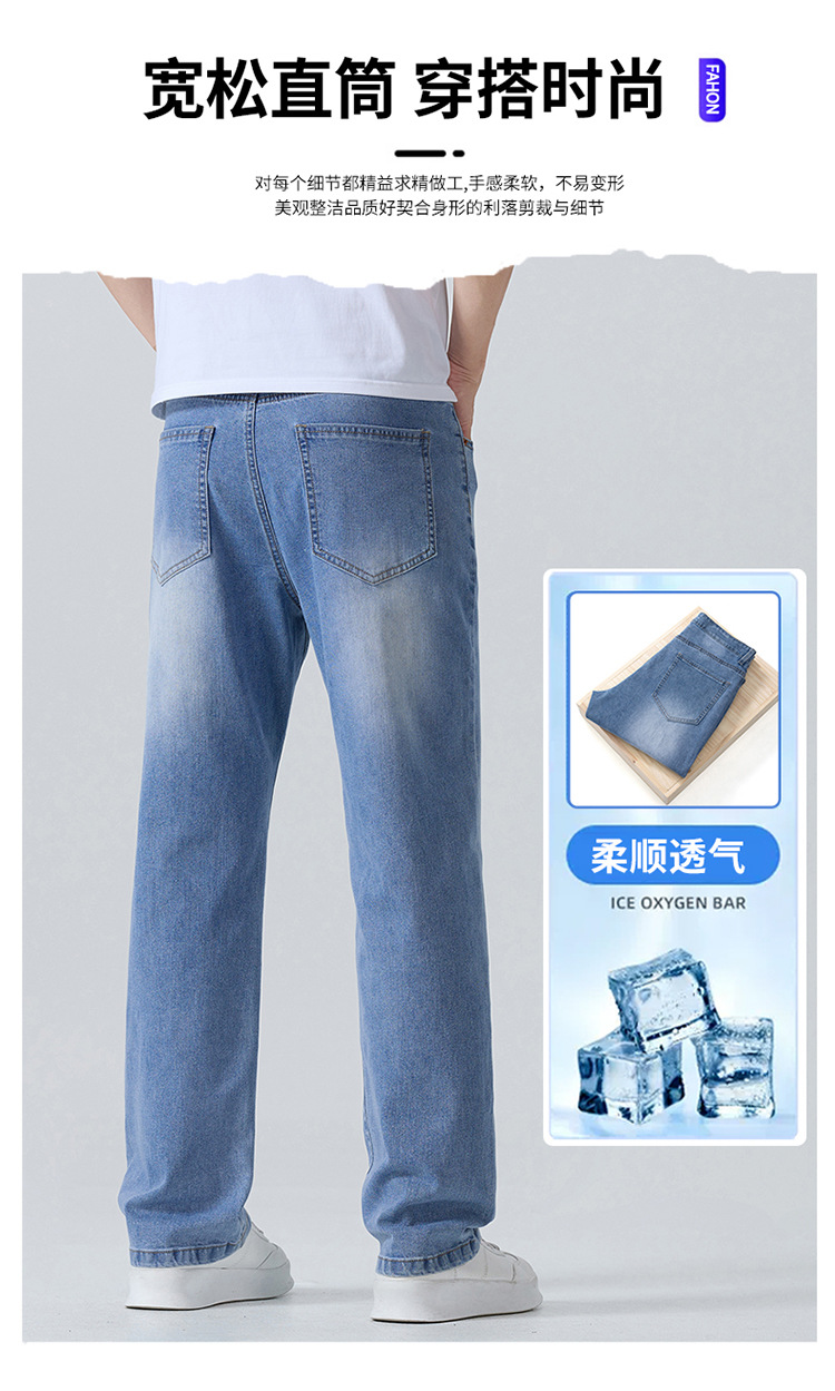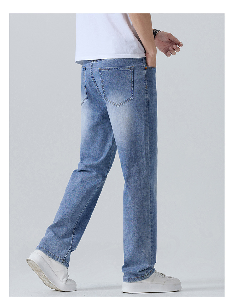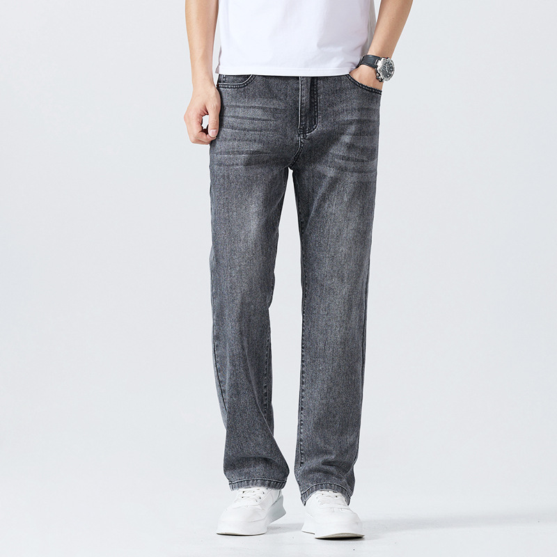남성용 여름 신상 스타일 쿨하고 멋진 워싱 와이드 청바지, 심플하고 패셔너블하며 루즈하고 슬림하며 캐주얼한 스트레이트 팬츠스토어 가기