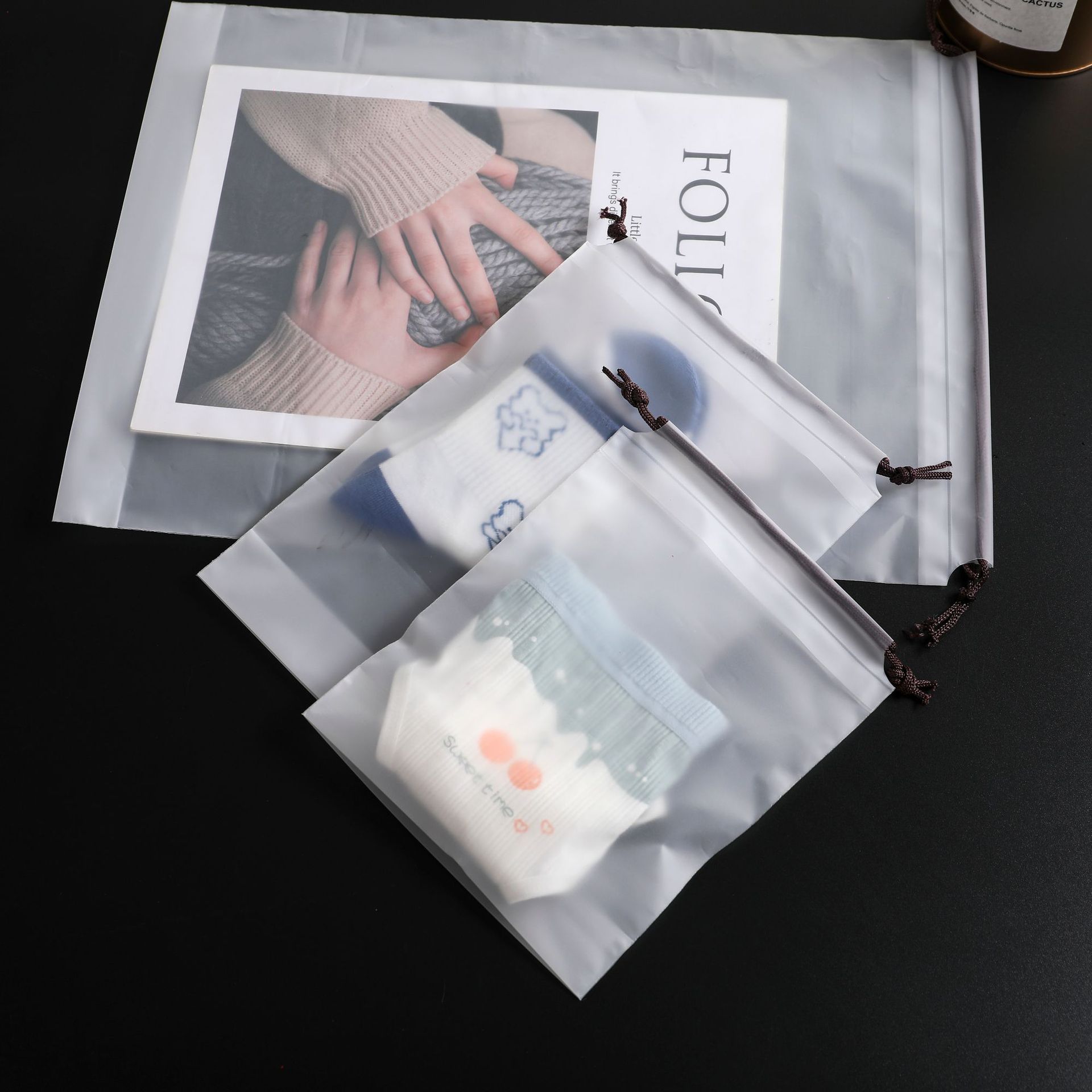 서리가 내린 곰 밧줄 가방 그림 가방 만화 양말 가방 플라스틱 방수 의류 보관 가방