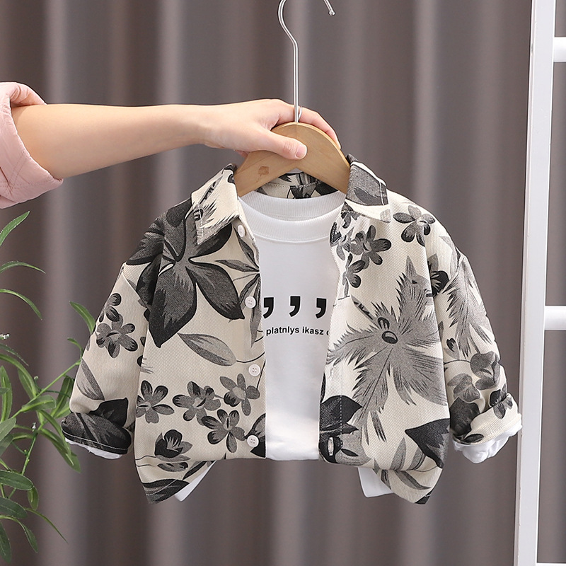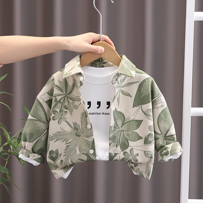 봄 2025 새로운 소년 캐주얼 간단한 올 매치 패셔블 프린트 셔츠 중소 어린이 긴팔 한국 유행 도매스토어 가기