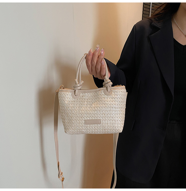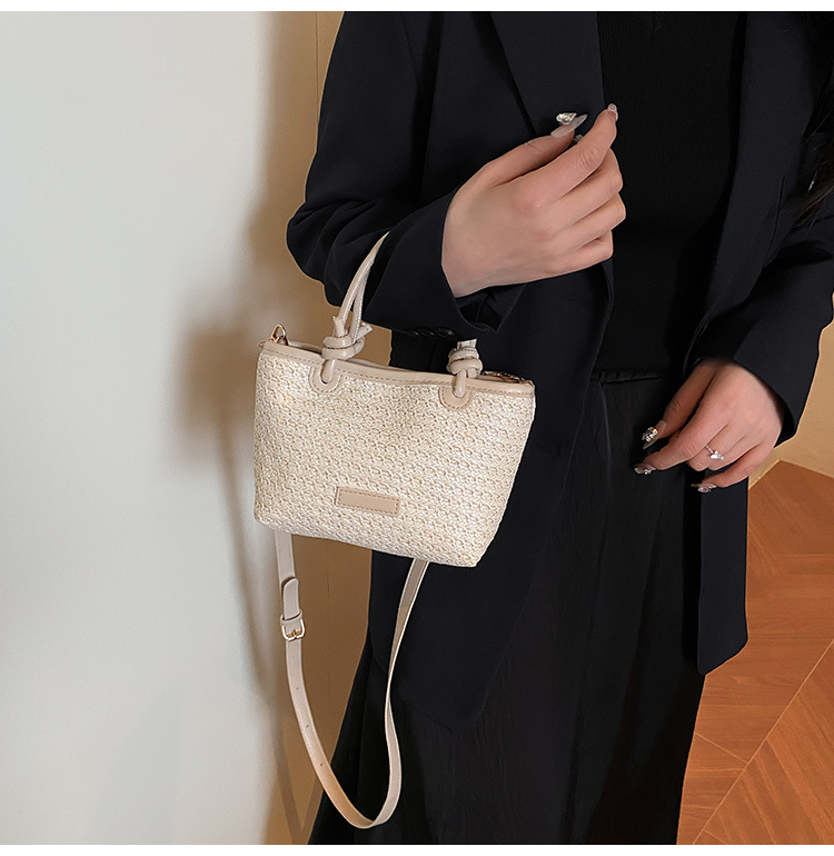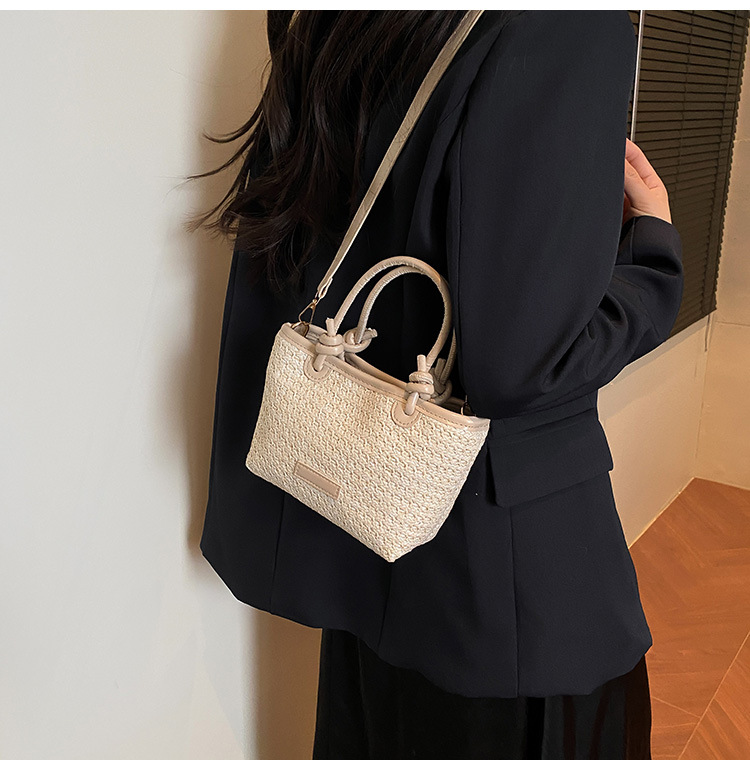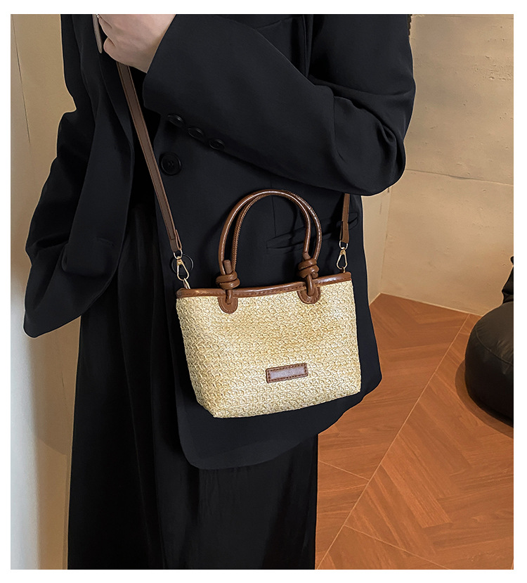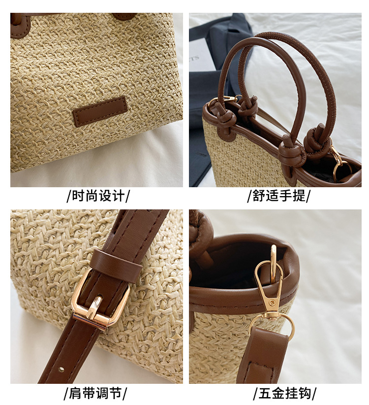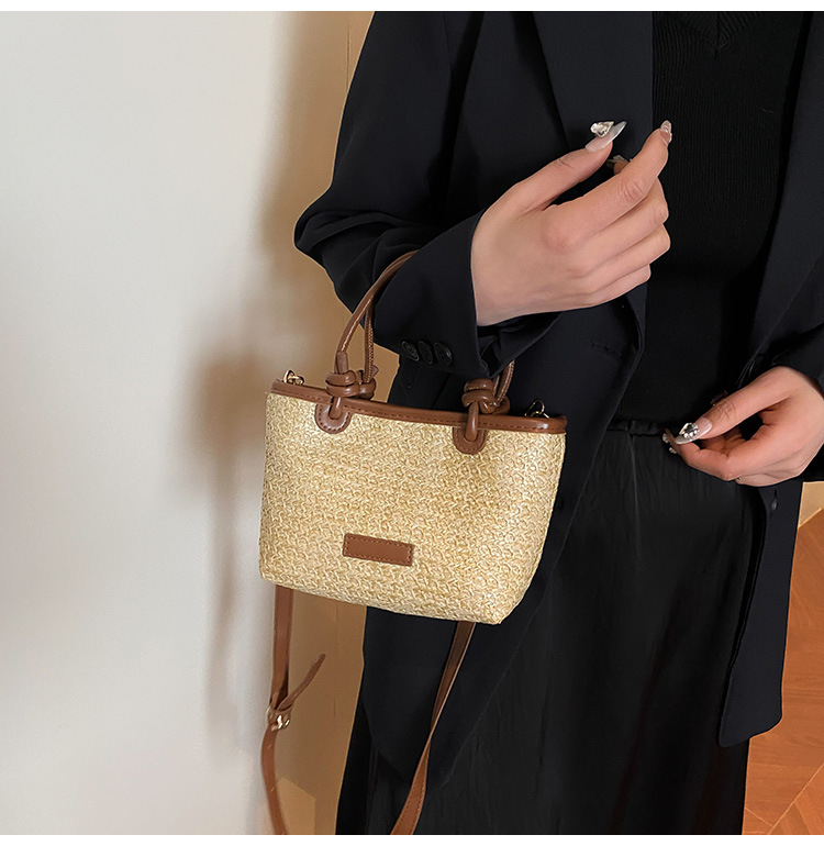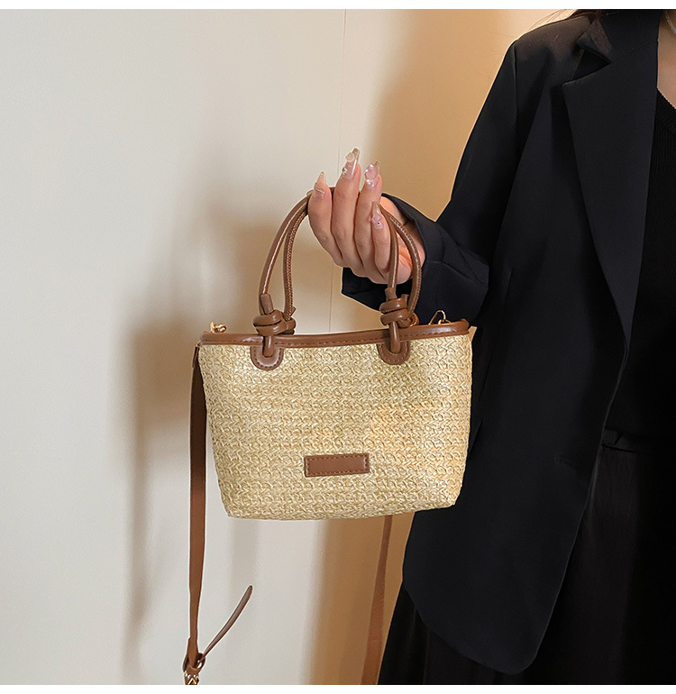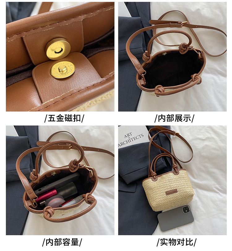 2025 년 여름 새로운 국경 뜨거운 판매 한국 스타일 밀짚 가방 야채 바구니 크로스 바디 가방 여성용 유행 간단한 버킷 가방