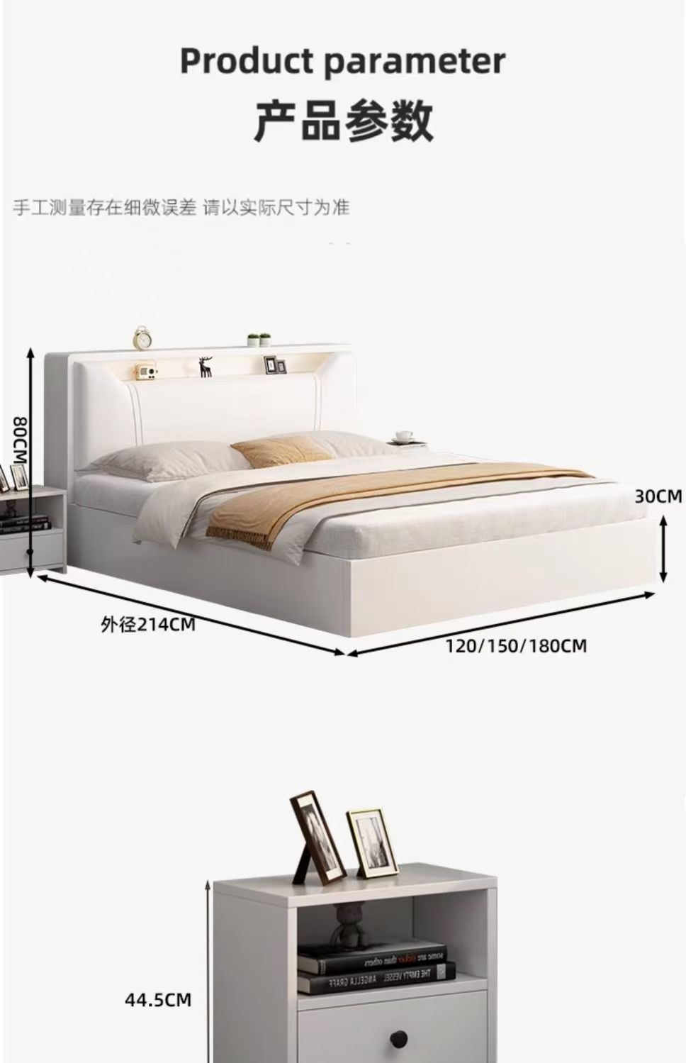 • 두꺼운 대형 침대 + 캐비닛 2개