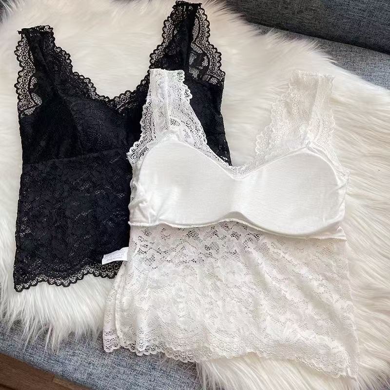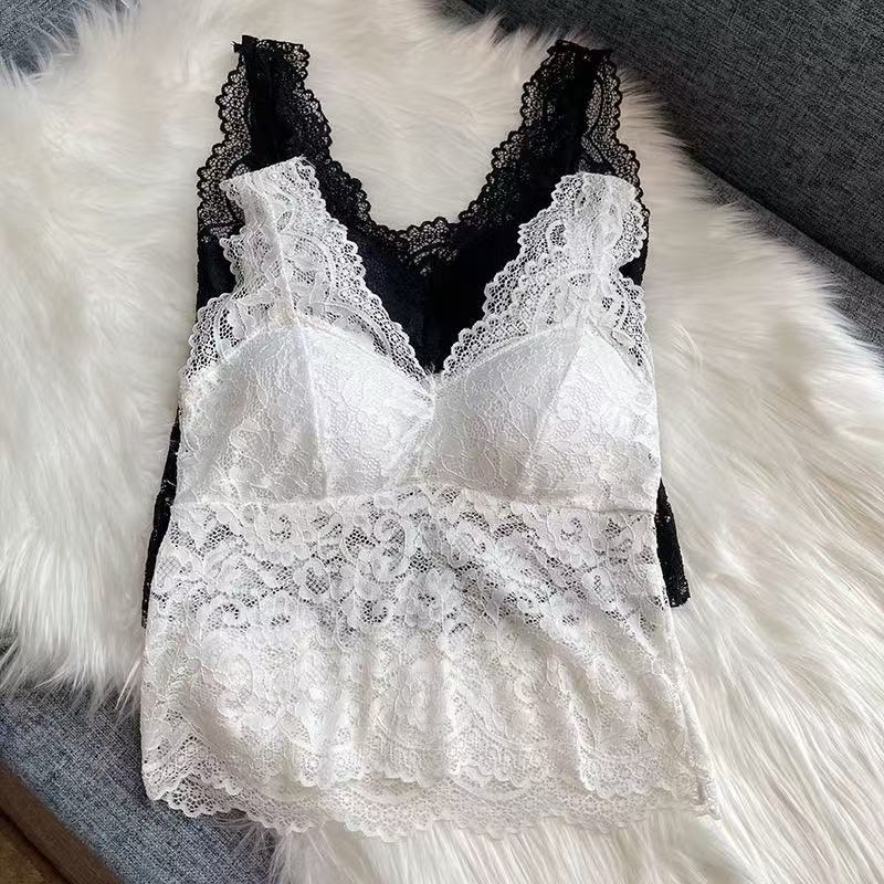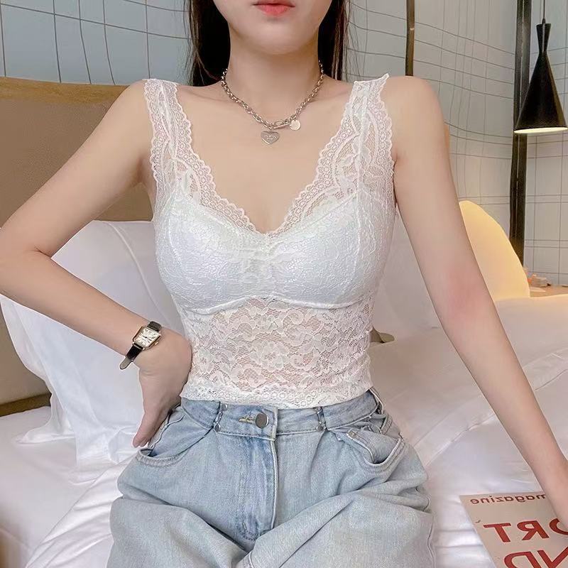 2025 봄 새로운 섹시한 레이스 v 넥 아름다운 뒤 캐미솔 다목적 민소매 탑 여성 속옷 및 겉옷스토어 가기