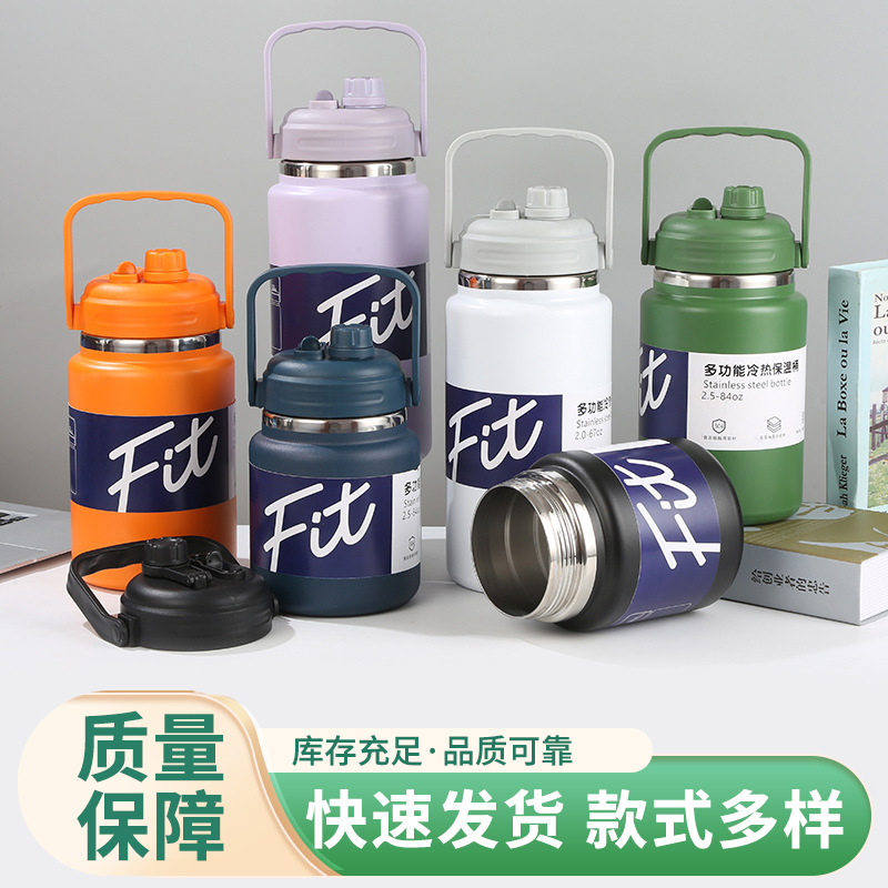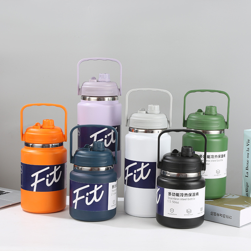 대용량 보온병, 다기능 손잡이 주전자, 스테인리스 진공 보온병, 야외 휴대용 스포츠 물병