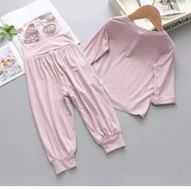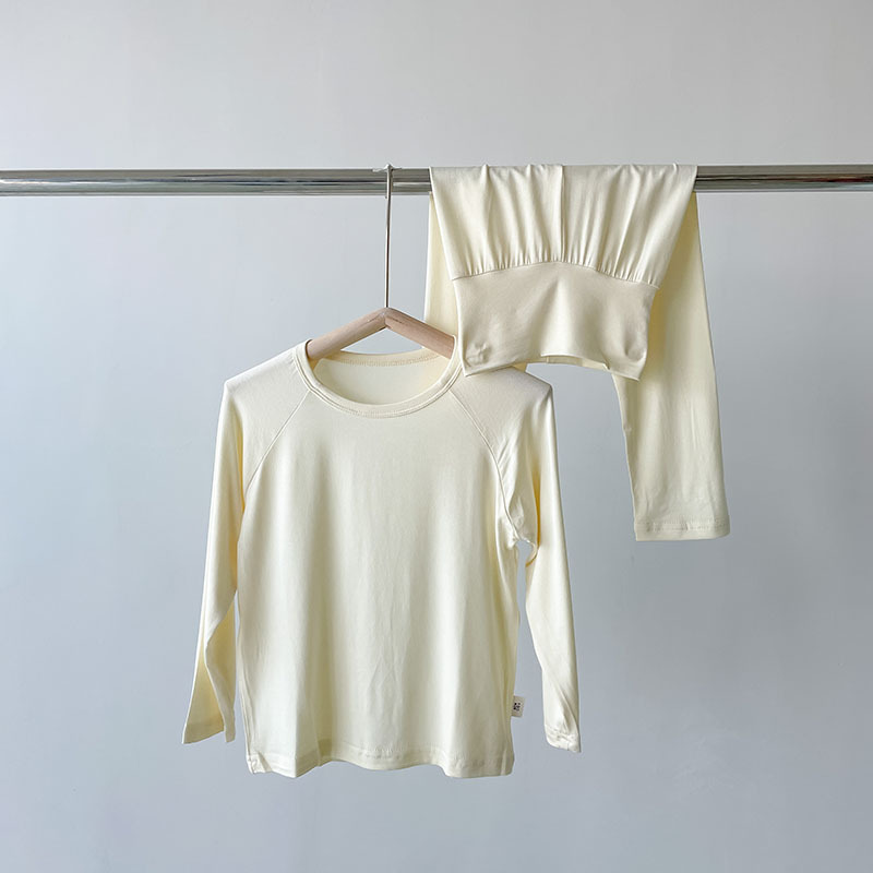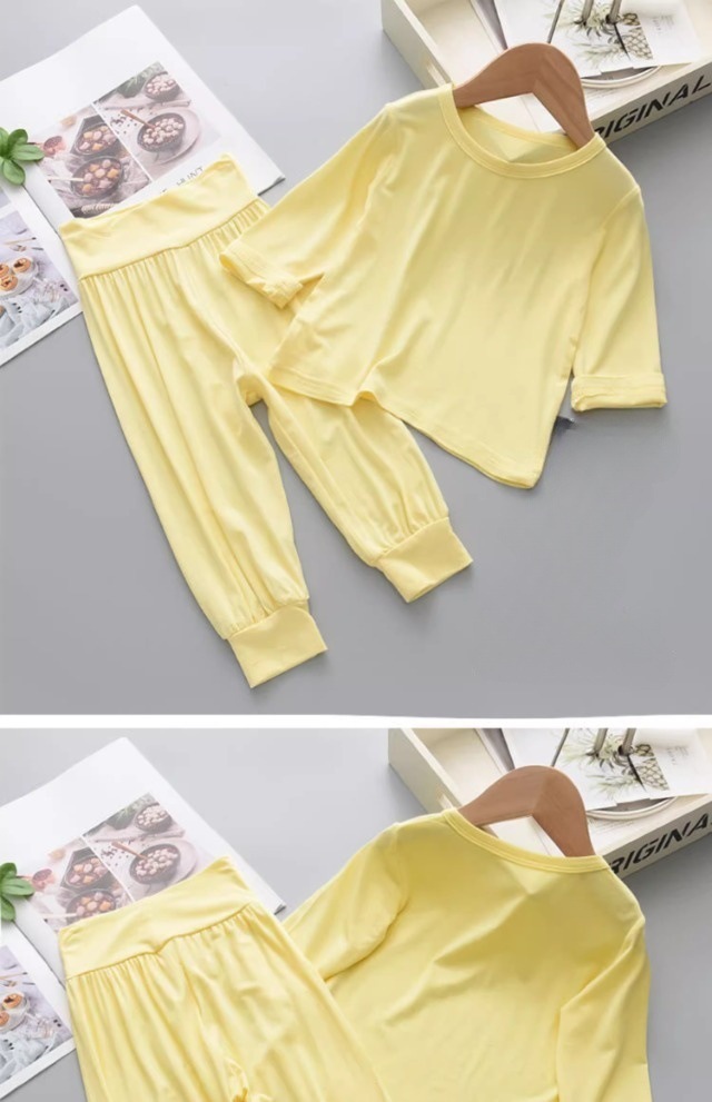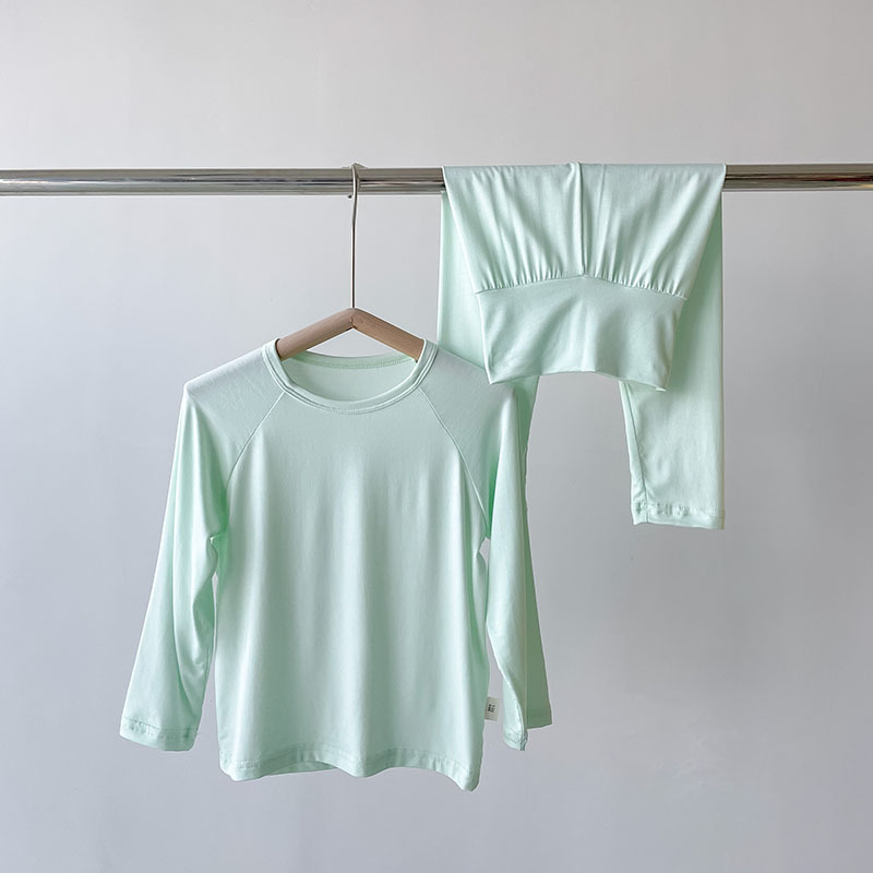어린이 모달 파자마 높은 허리 배꼽 보호 홈 의류 봄과 가을 긴 소매 바지 소년 소녀 용 2 피스 속옷 세트