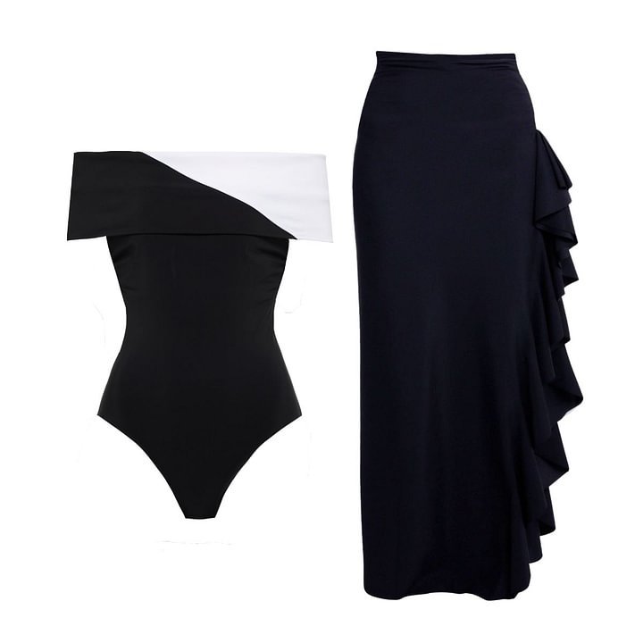 유럽과 미국의 새로운 아마존 AliExpress 흑백 인 스타일 고급 원피스 수영복 여성 세트 폭발 25292스토어 가기
