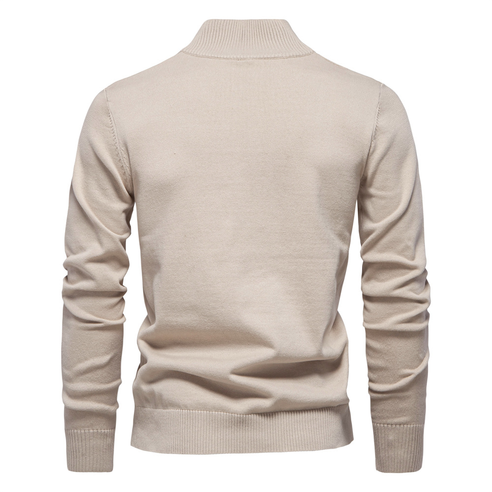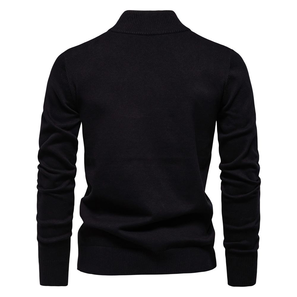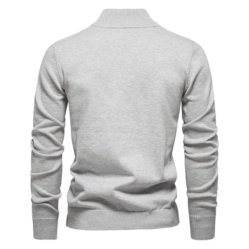 2024 새로운 솔리드 컬러 코튼 스웨터 국경 대외 무역 남자 수직 칼라 하프 지퍼 슬림 핏 남자 스웨터 탑