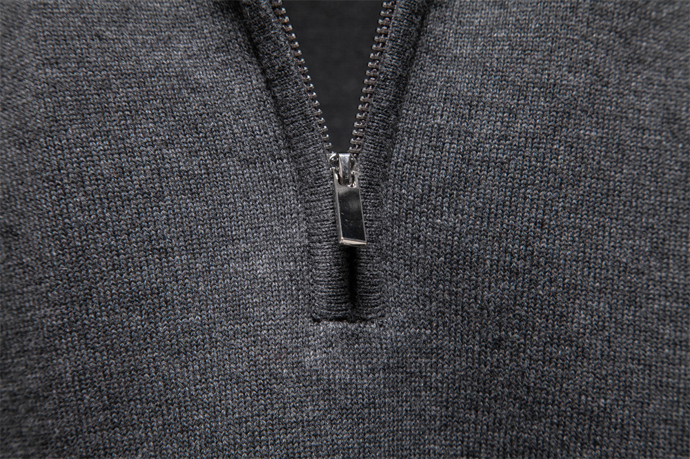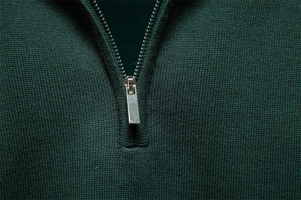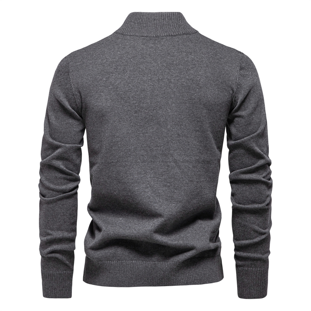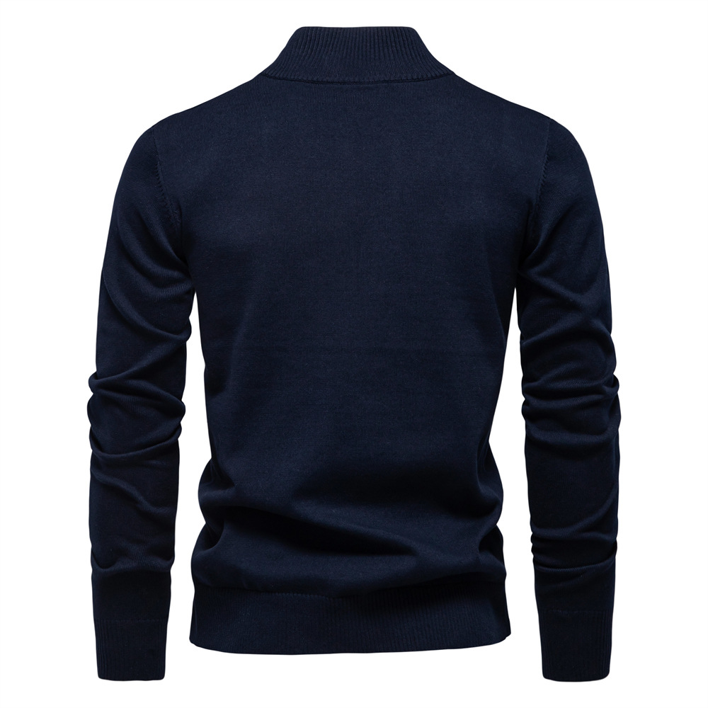 2024 새로운 솔리드 컬러 코튼 스웨터 국경 대외 무역 남자 수직 칼라 하프 지퍼 슬림 핏 남자 스웨터 탑
