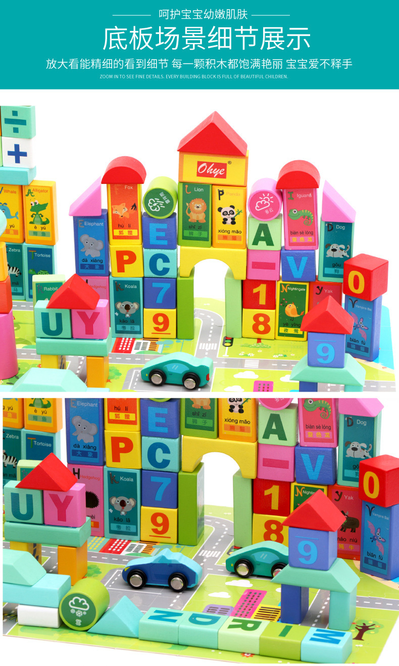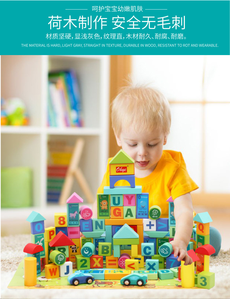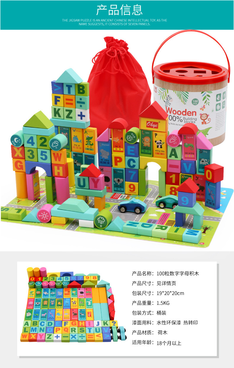 Weiwihu 교육용 빌딩 블록 메이플 나무 대형 통 50~100 글자 빌딩 블록 환경 친화적인 유아 교육 장난감스토어 가기