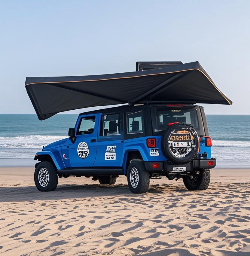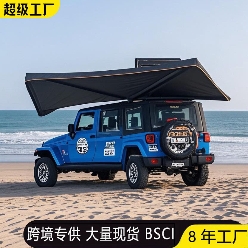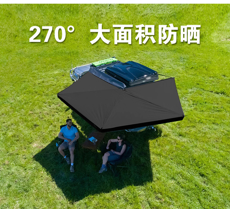 차량용 측면 텐트, 부채꼴형 270도, 방수 및 자외선 차단, 설치 불필요, 빠른 설치, 블랙 글로시 알루미늄 합금, 야외 캠핑용 차량 측면 텐트