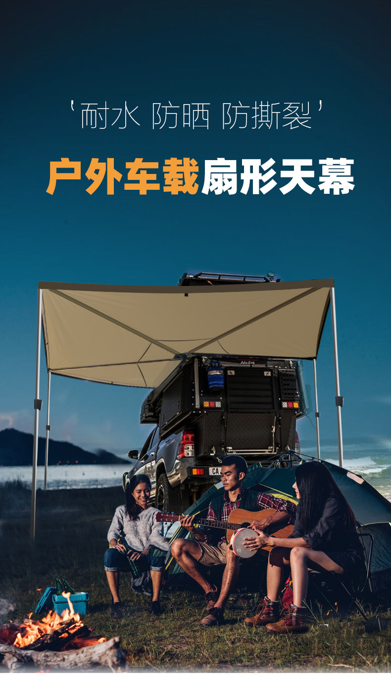 차량용 측면 텐트, 부채꼴형 270도, 방수 및 자외선 차단, 설치 불필요, 빠른 설치, 블랙 글로시 알루미늄 합금, 야외 캠핑용 차량 측면 텐트스토어 가기