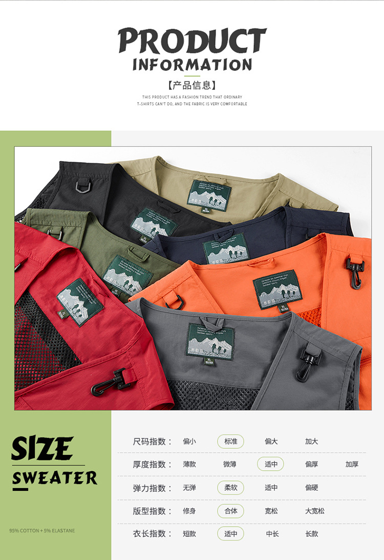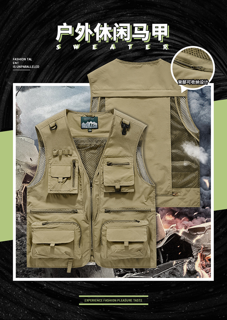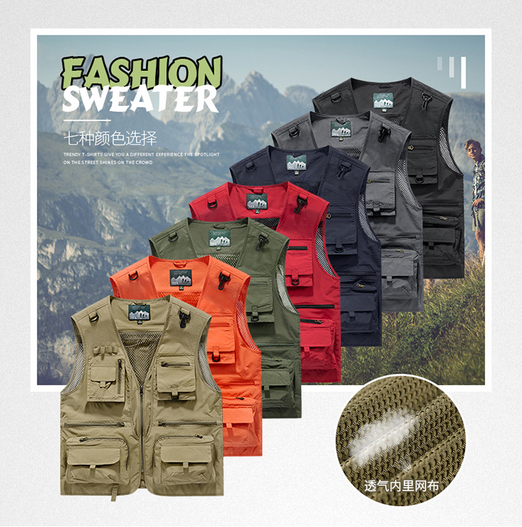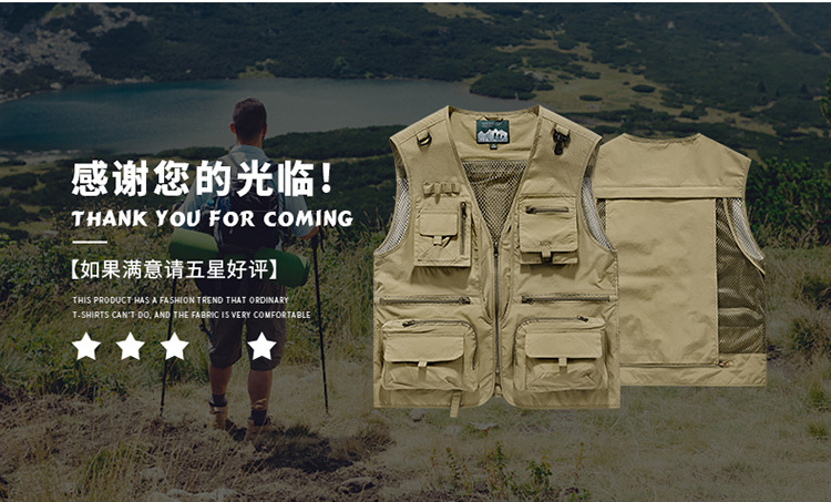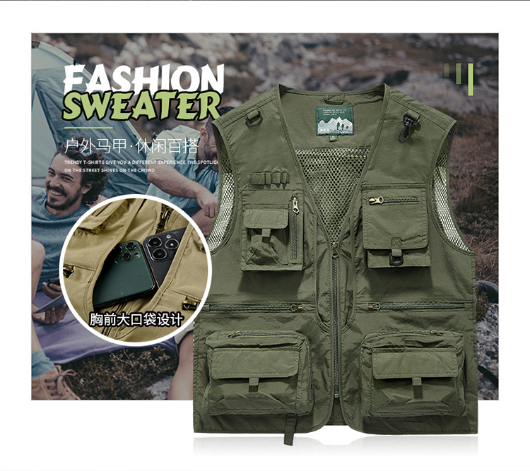 여름 야외 조끼 남성용 멀티 포켓 작업복 캐주얼 낚시 등산 사진 빠른 건조 양복 조끼 남성용 메쉬스토어 가기