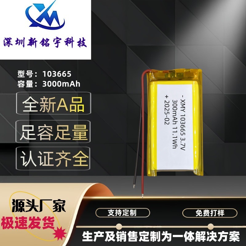 聚合物三元锂电池UL1642认证电池3.7V3000mAh103665带保护锂电池