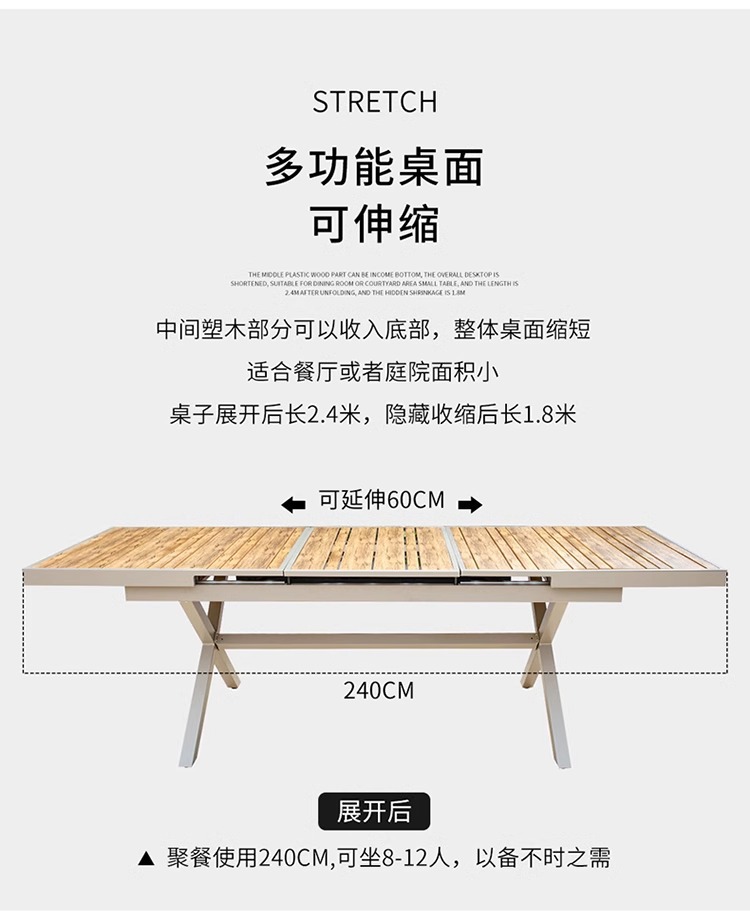 • [잉크 나뭇결] 180*90CM 텔레스코픽 롱 테이블 (펼친 길이 240CM)