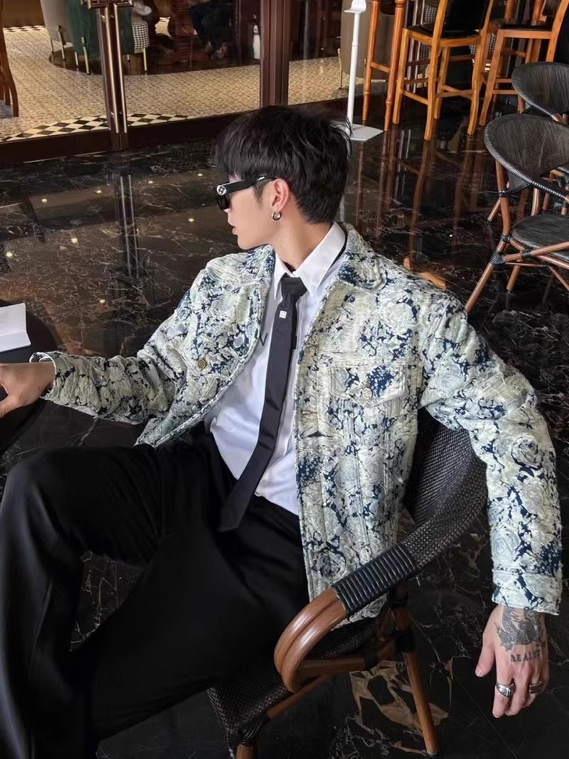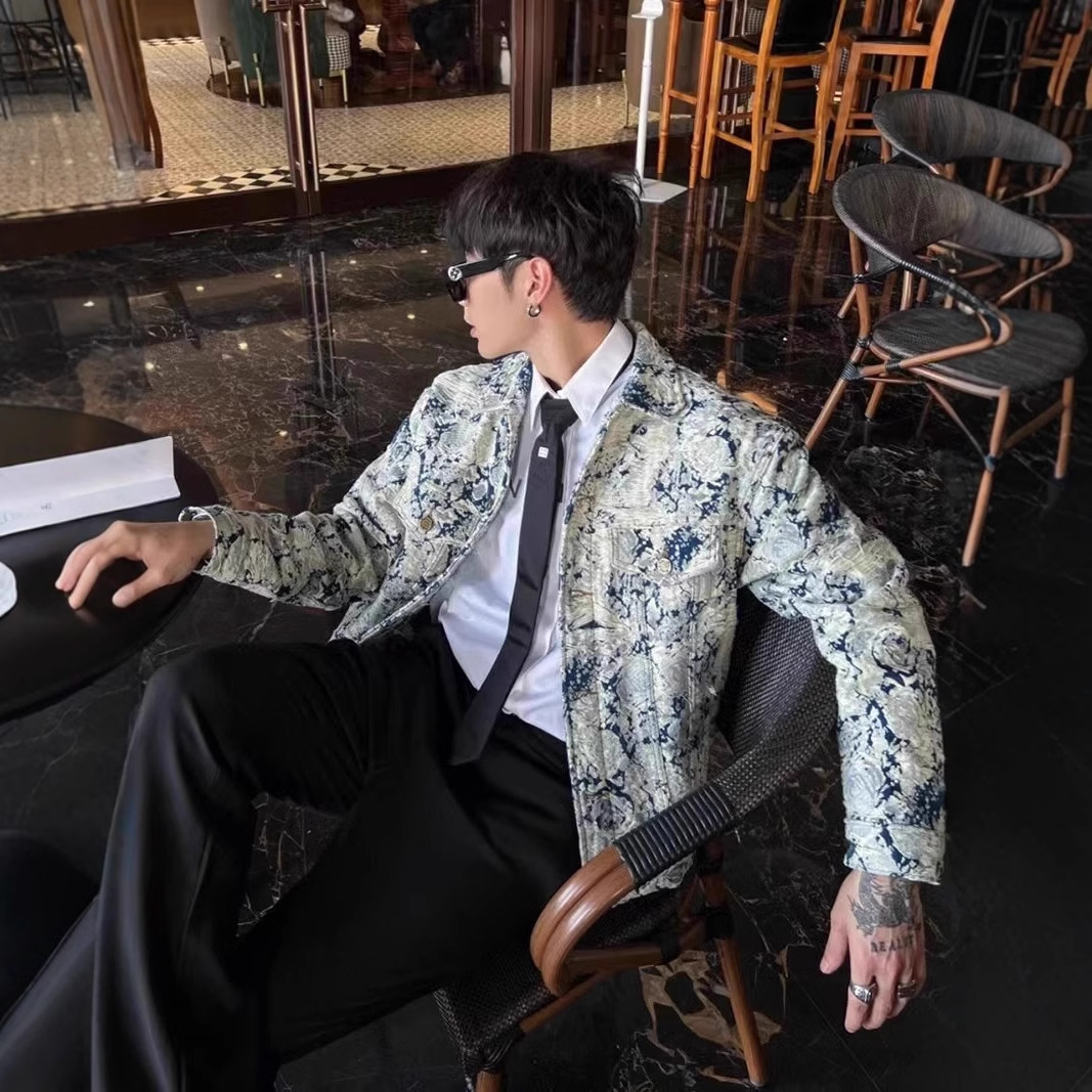 2025 유행 브랜드 패션 새로운 어깨 패드 재킷 느슨한 낮은 허리 느슨한 데님 재킷