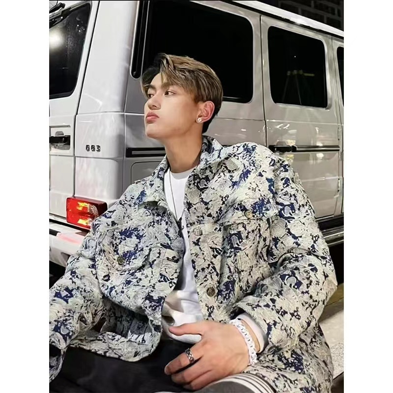 2025 유행 브랜드 패션 새로운 어깨 패드 재킷 느슨한 낮은 허리 느슨한 데님 재킷스토어 가기