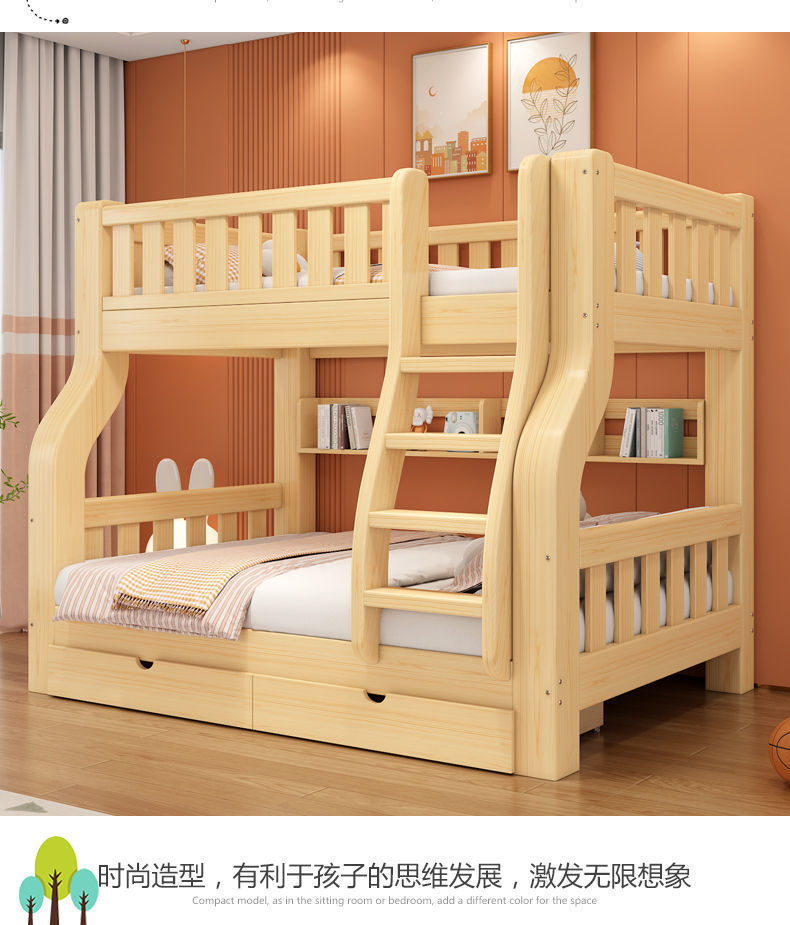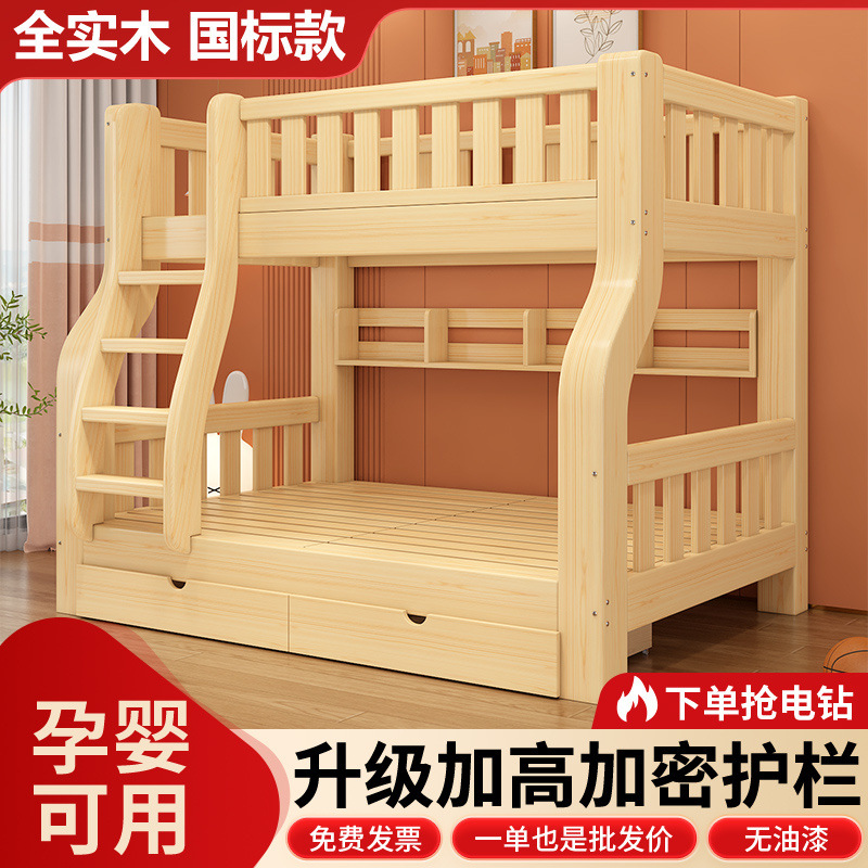 풀 솔리드 우드 GB 상하 침대 이층 침대 높고 낮은 침대 성인 어린이 작은 아파트 상하 침대 2 층 어머니 침대