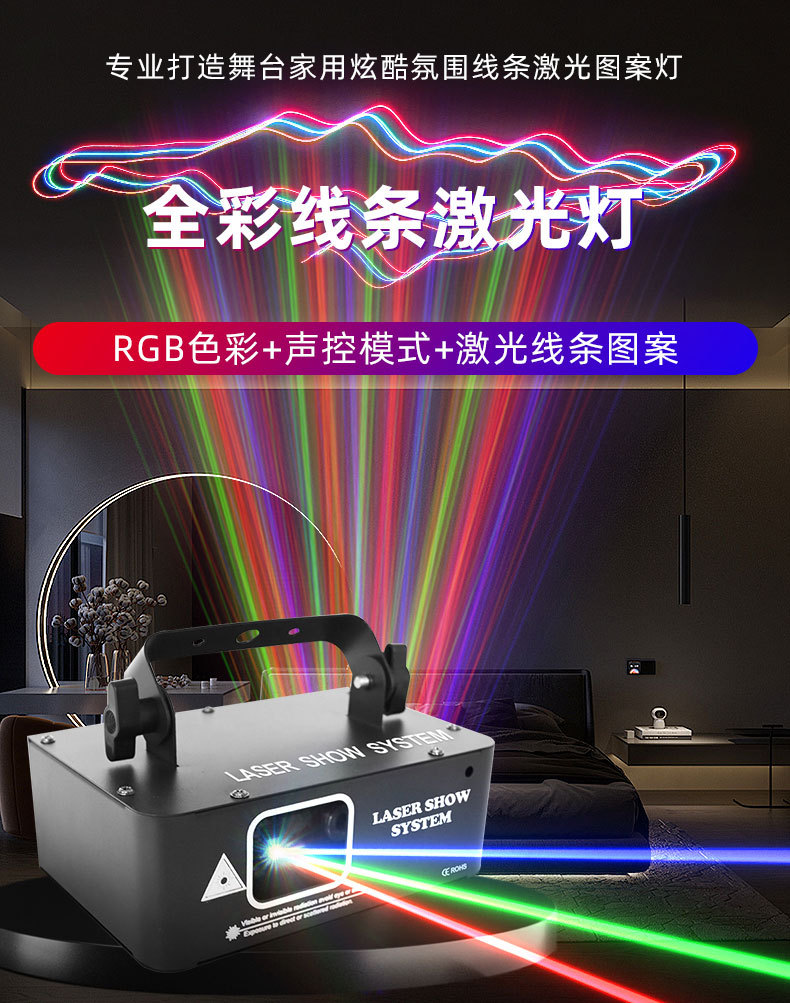 새로운 DMX512 풀 컬러 레이저 라이트 라인 패턴 레이저 빛 디스코 다채로운 바 조명 무대 조명