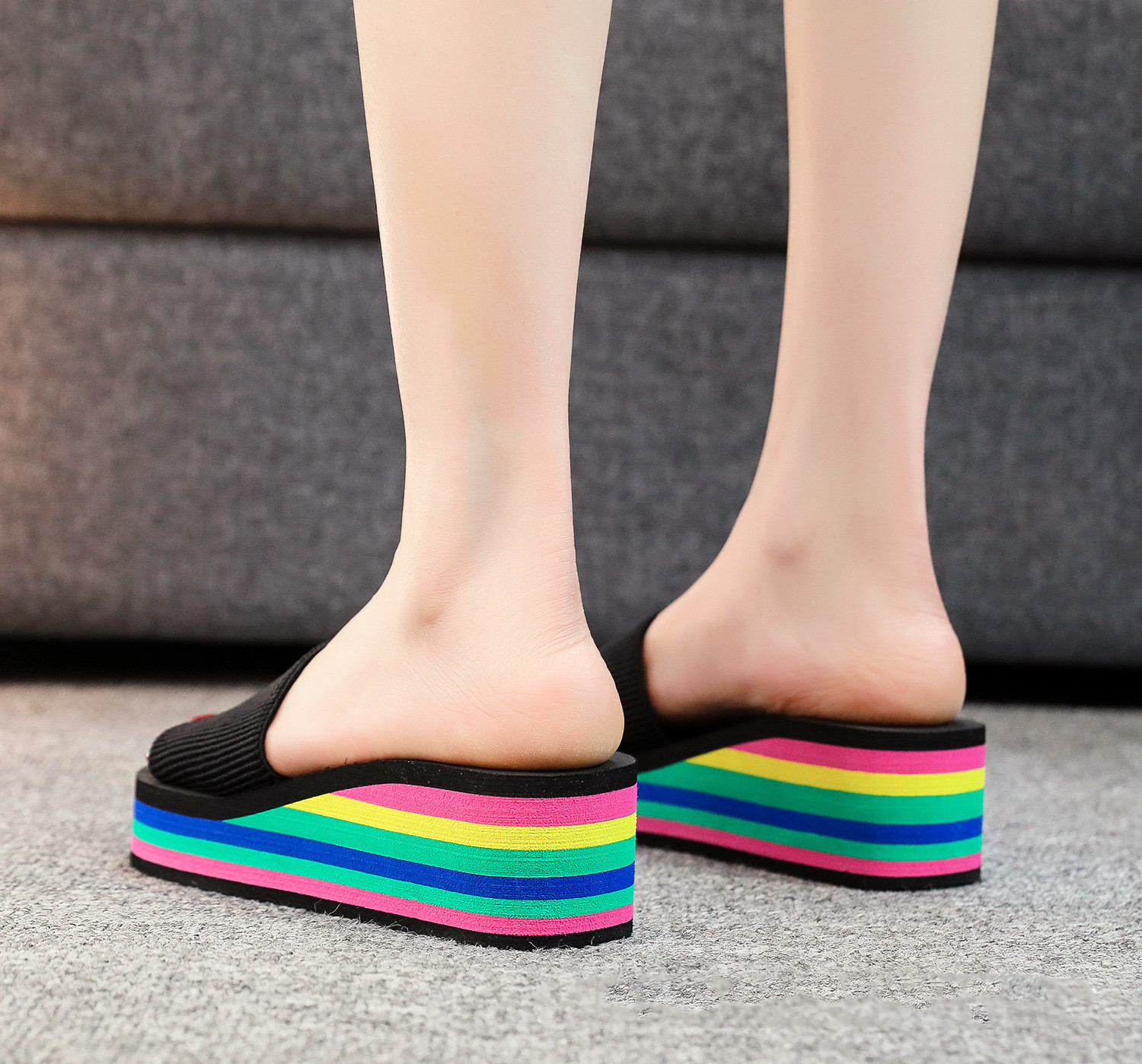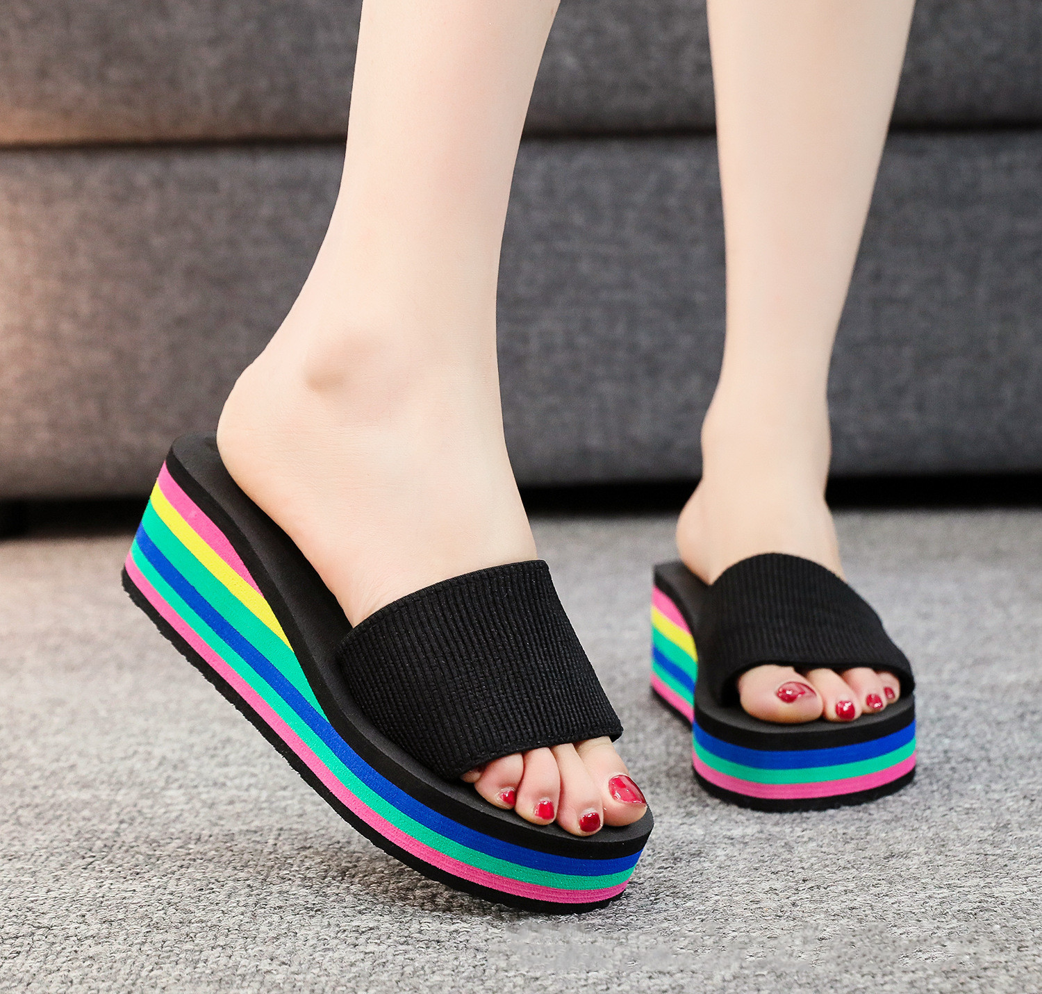 국경 간 신발 여성의 2025 새로운 패션 캐주얼 샌들 탄성 밴드 증가 웨지 힐 클립 청어 비치 샌들스토어 가기