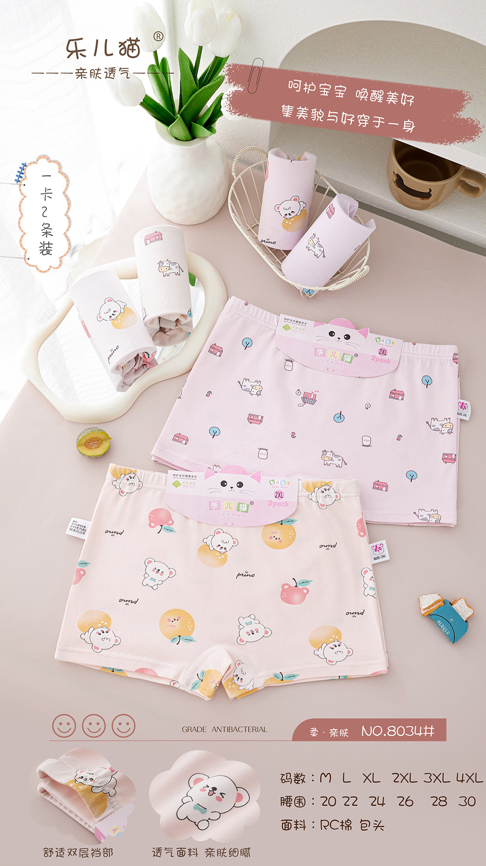 중소형 어린이용 면 사각팬티 초등학생 만화 프린트 아동 속옷 여아 사각팬티