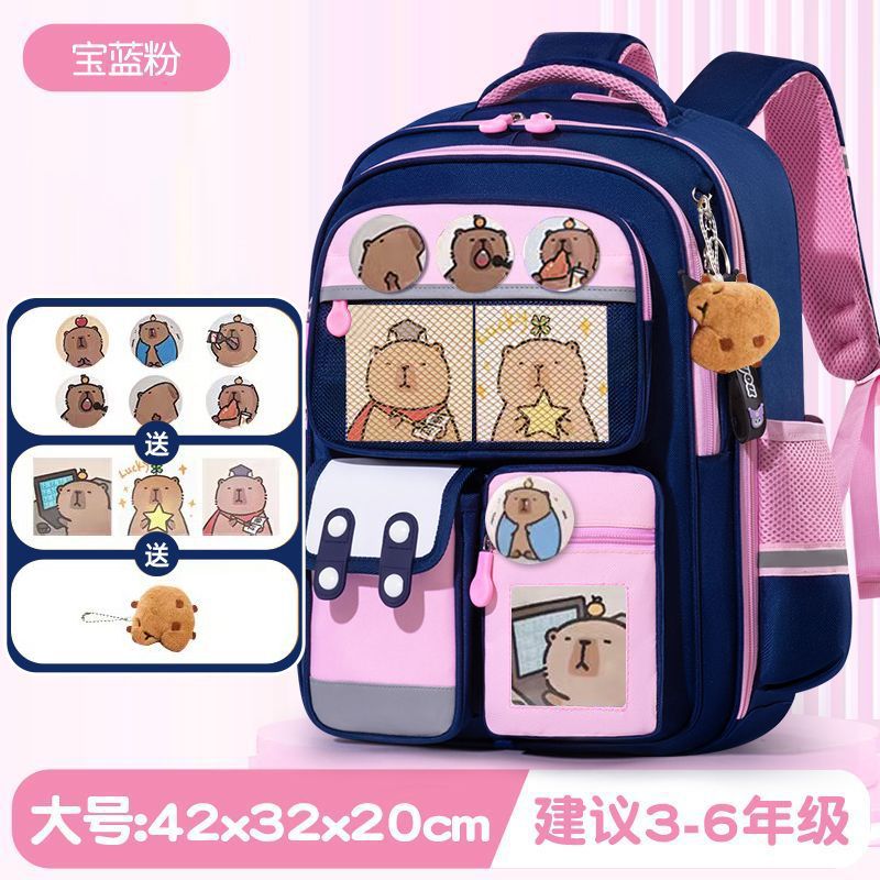 Kapibala Schoolbag 소녀의 대용량 귀여운 Capybara 배낭 중학교 및 초등학생 남성용 내구성 경량 배낭