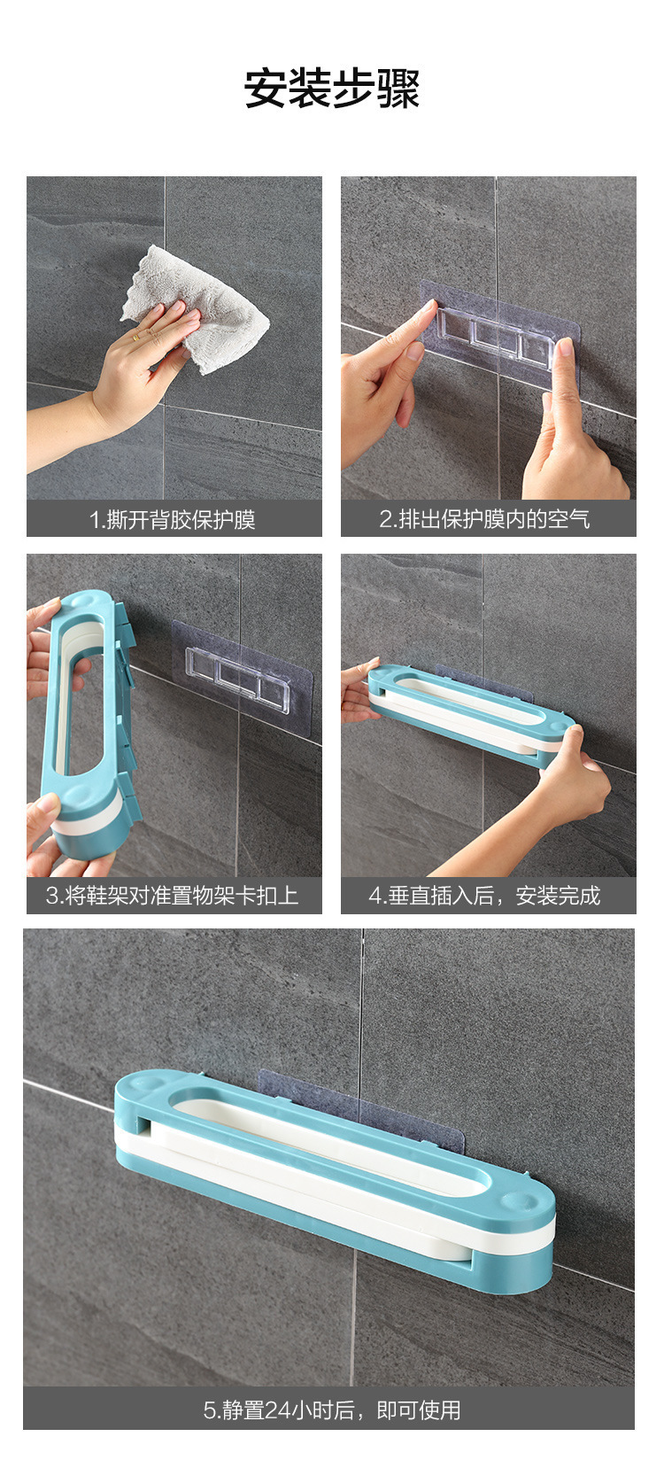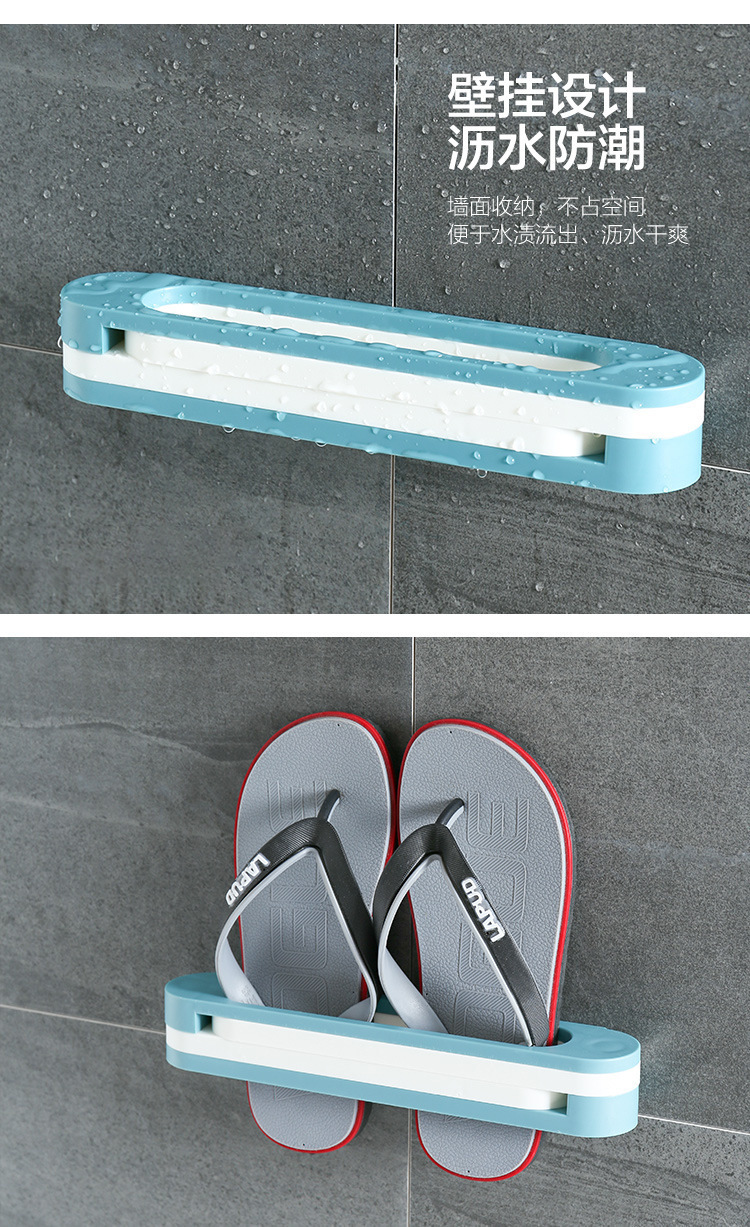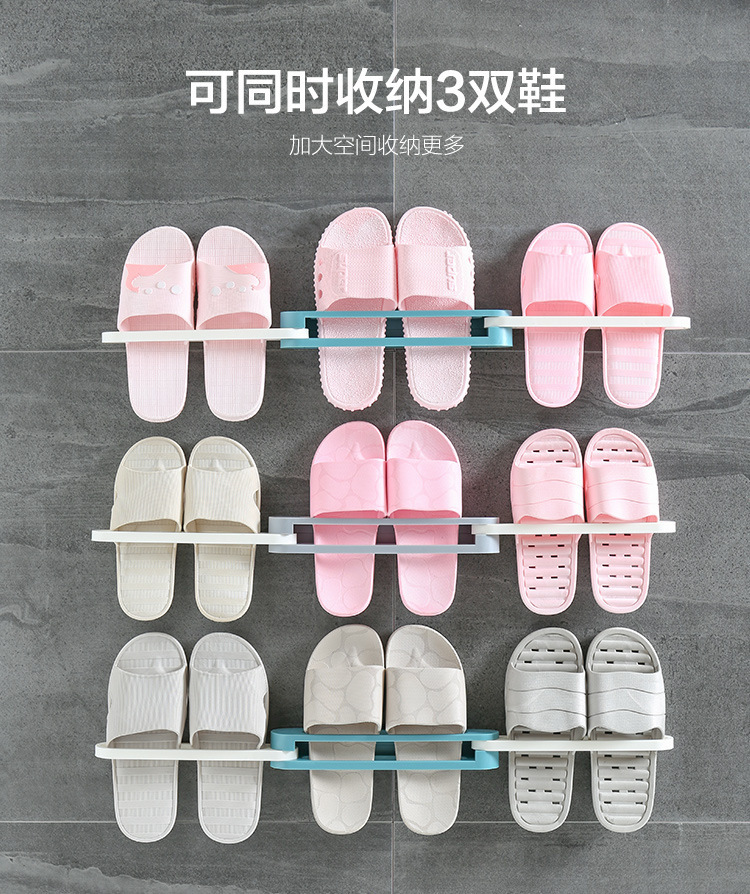 구멍을 뚫지 않고 접을 수 있는 3-in-1 다기능 벽걸이 슬리퍼 홀더, 신축식 욕실 수건 보관함