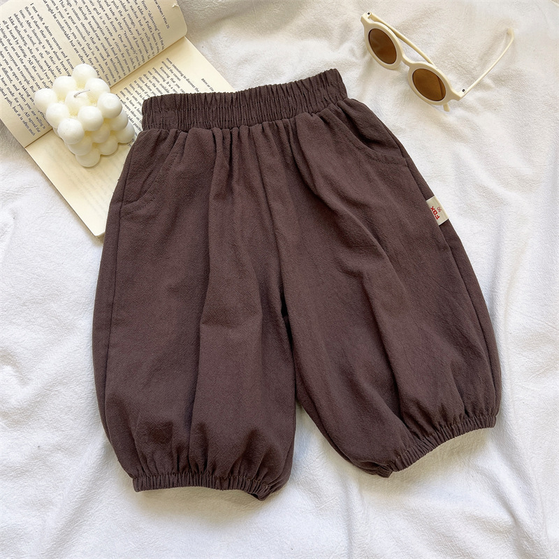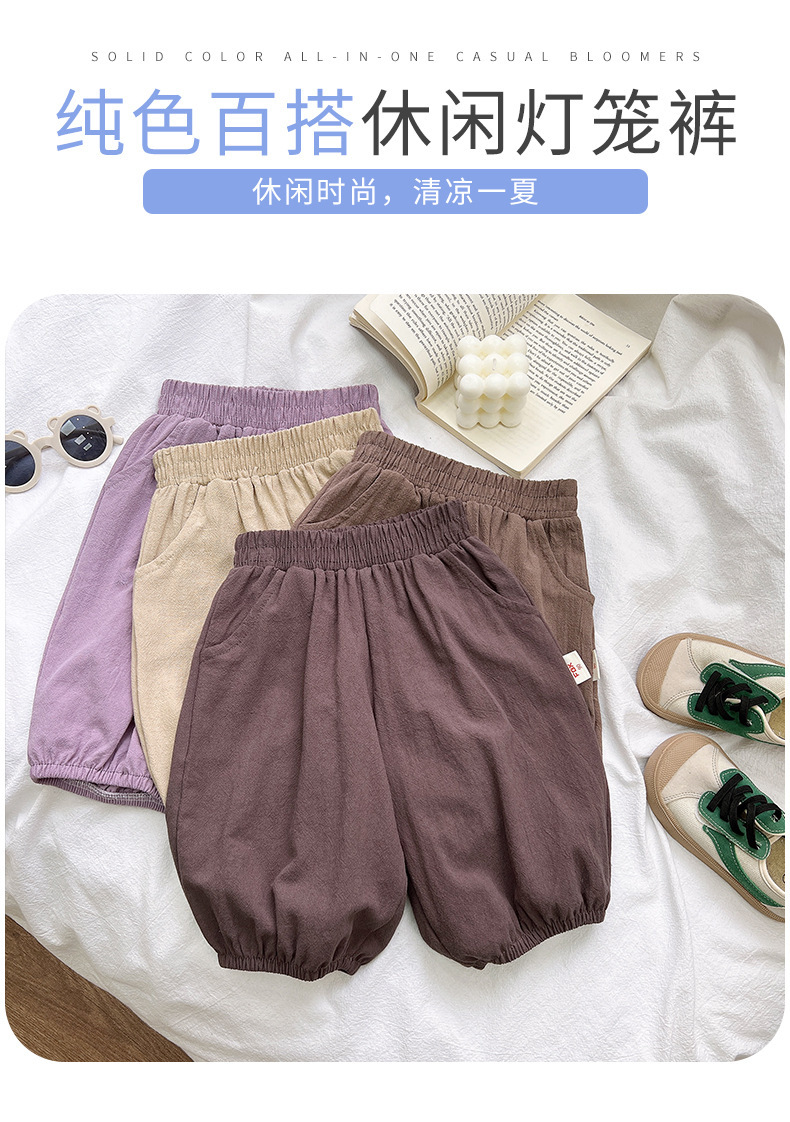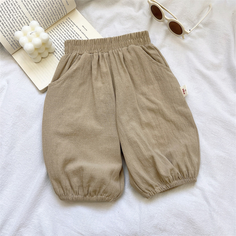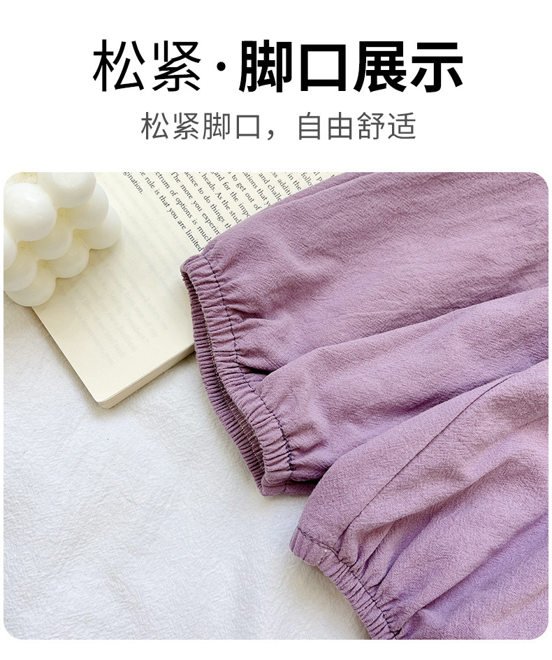 아동용 면 및 린넨 크롭 팬츠, 여아용 바지, 여름 신작 한국식 캐주얼 바지, 아기 겉옷, 다용도 블루머스토어 가기